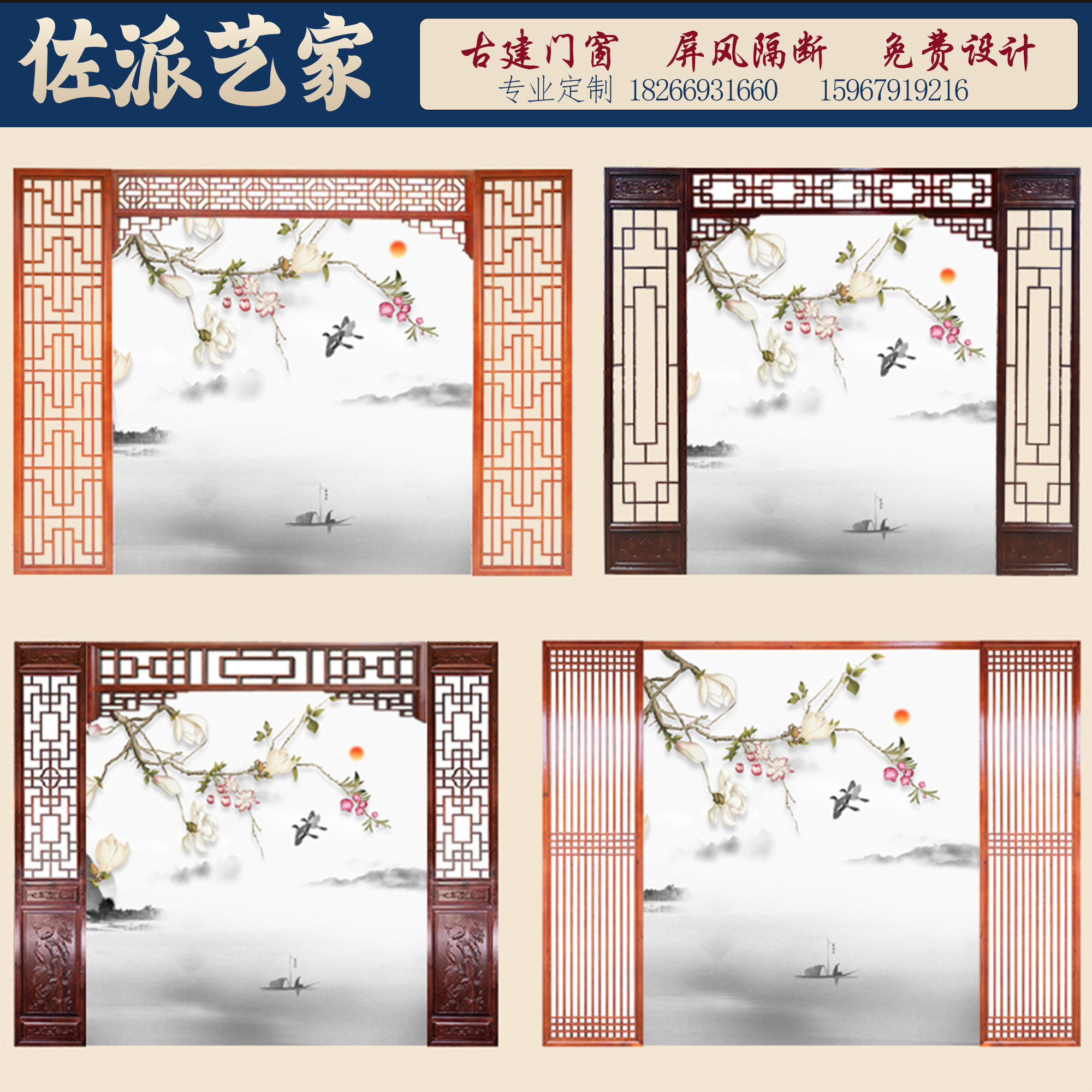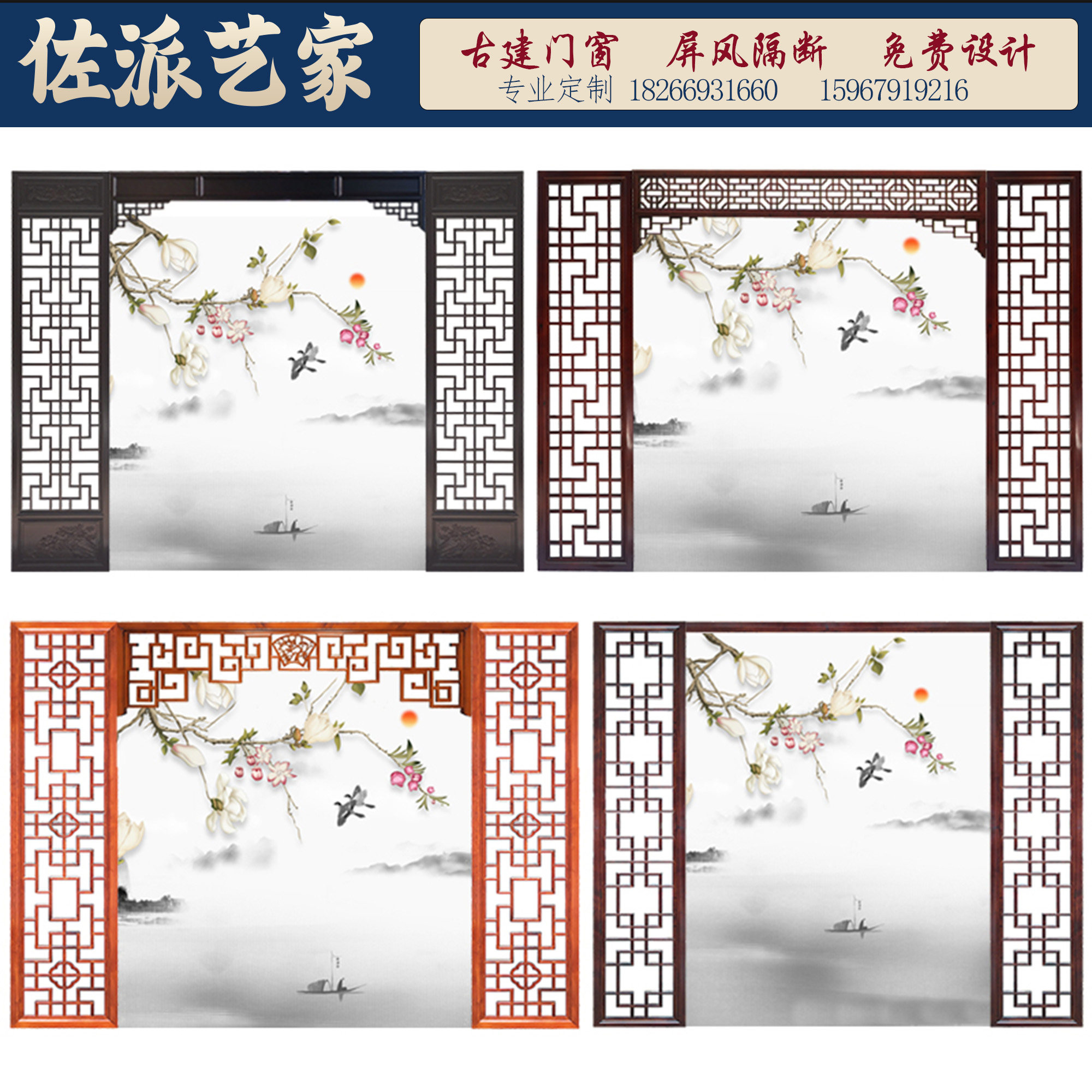 东阳木雕中式古典门仿古镂空实木雕刻电视背景墙装修客厅屏风隔断