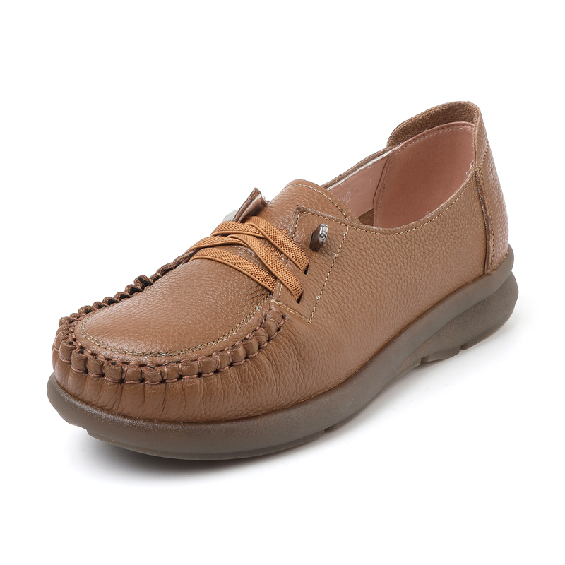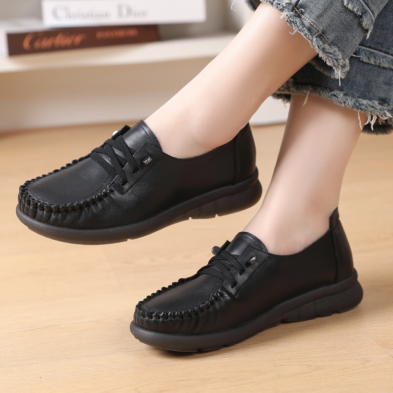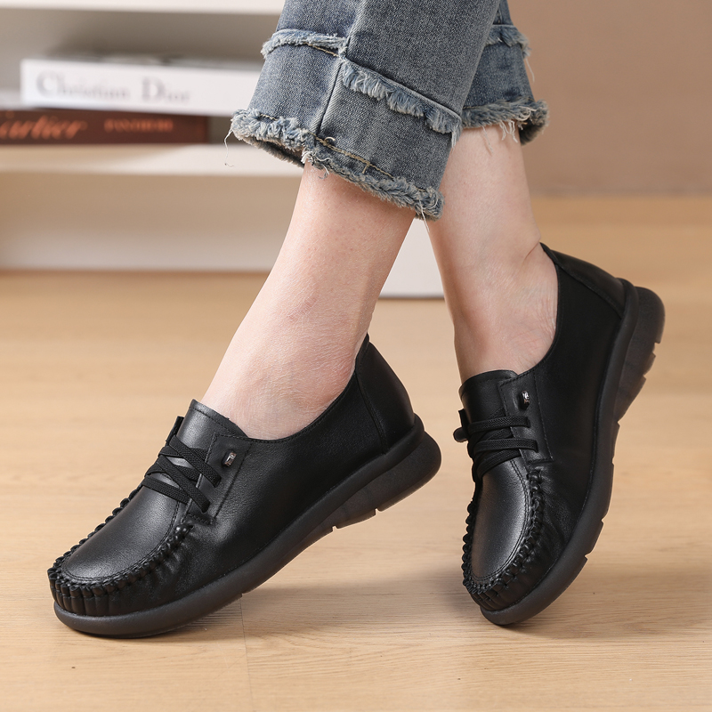 妈妈鞋真皮单鞋平跟防滑软底皮鞋