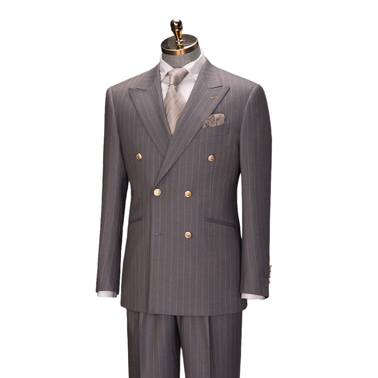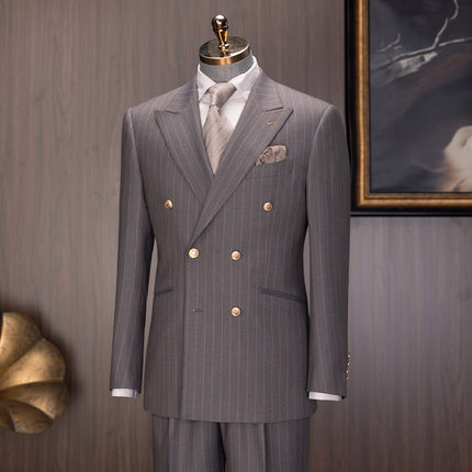 骆豪50澳洲羊毛西服套装半麻衬男士双排扣西装商务正装感婚庆礼服