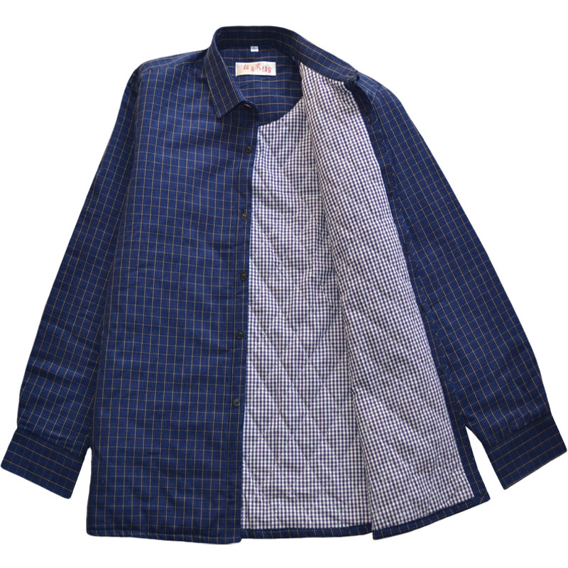冬季保暖夹棉加厚中老年爸爸衬衣