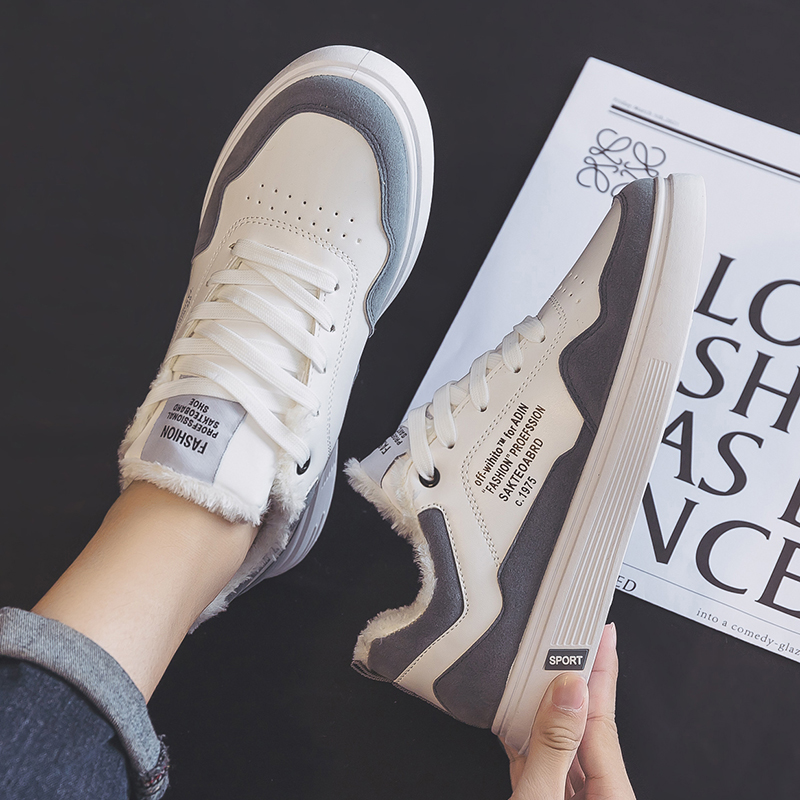 2024夏季新款加绒加厚保暖棉鞋潮流男鞋百搭休闲小白板鞋运动潮鞋