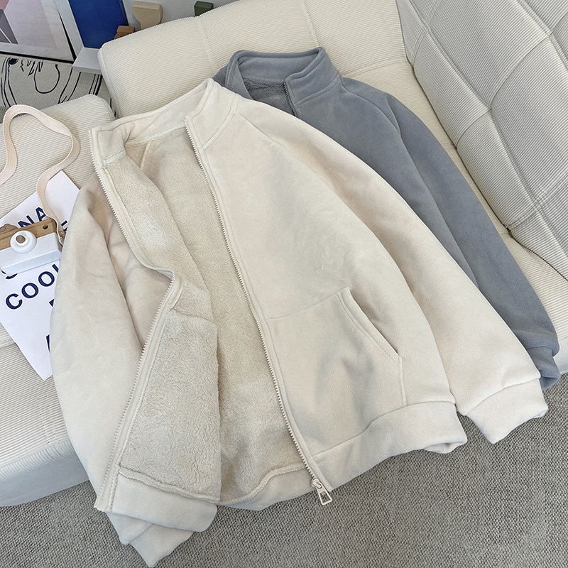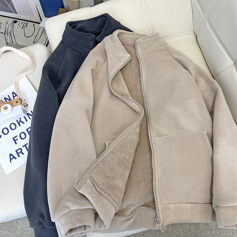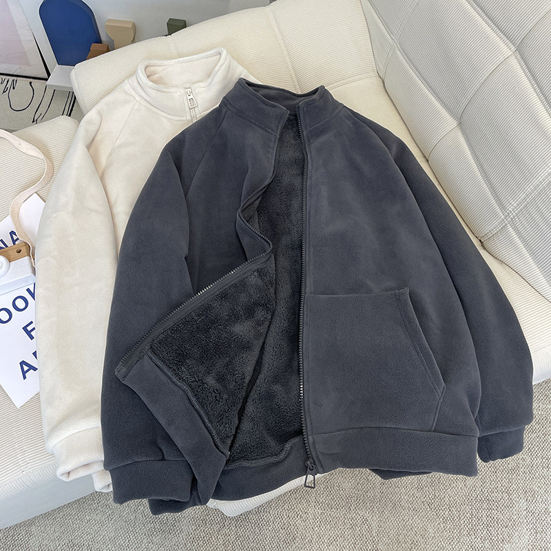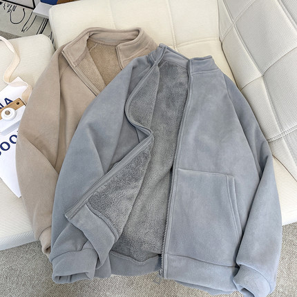 加绒宽松简约拉链外套