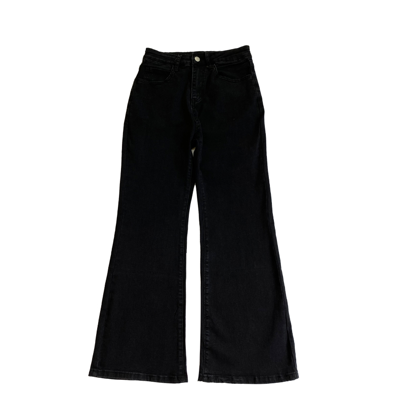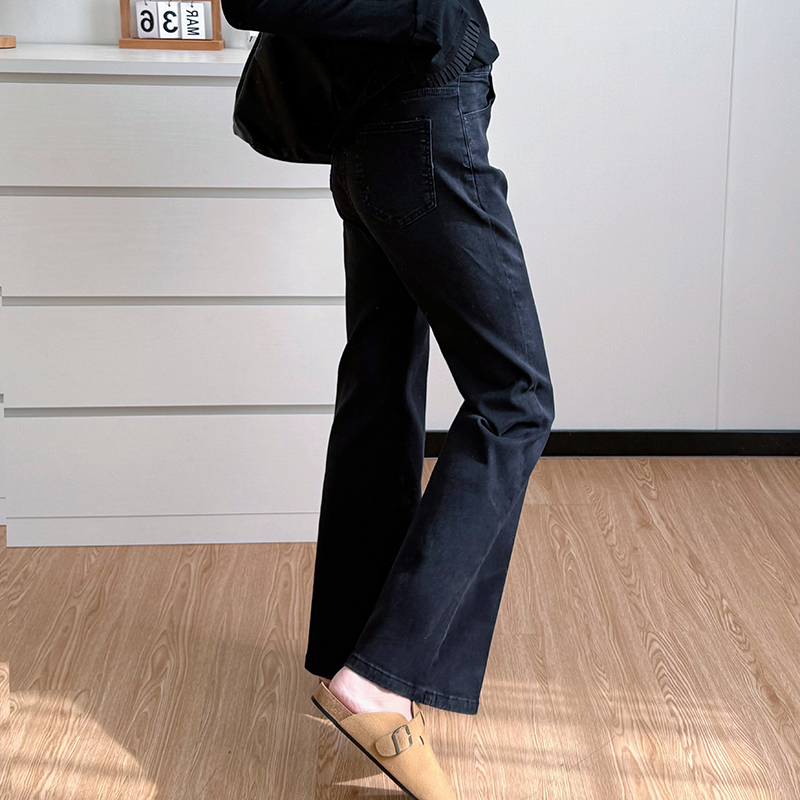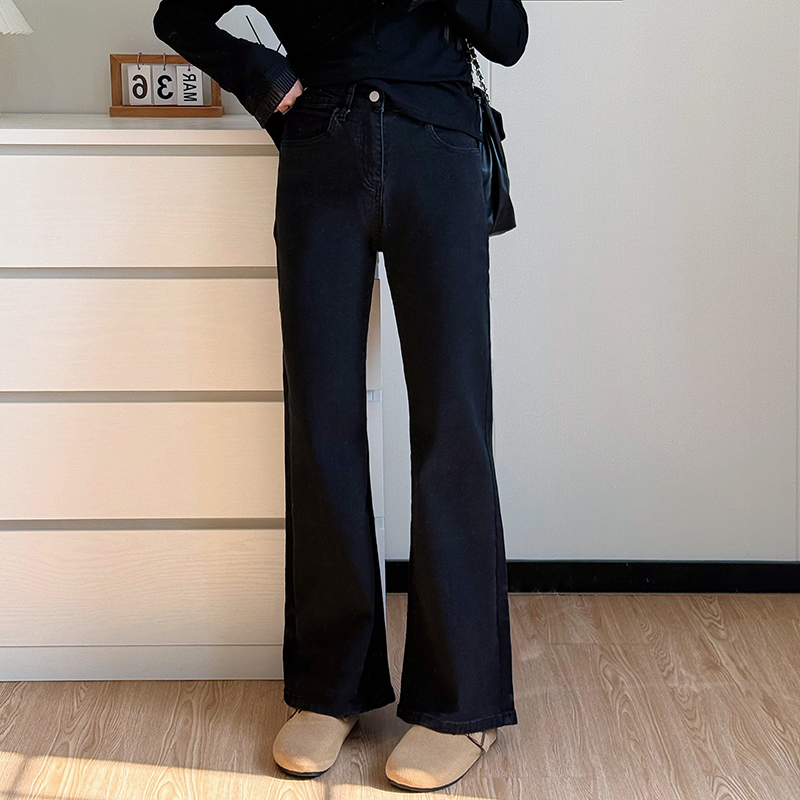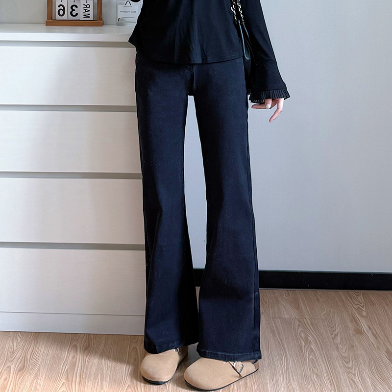 COCO微胖大码2025秋季裤子女简约百搭休闲新款黑色高腰微喇牛仔裤