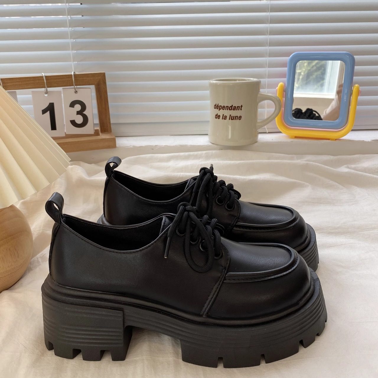 英伦风黑色厚底松糕小皮鞋女2025春秋新款增高复古百搭日系jk单鞋