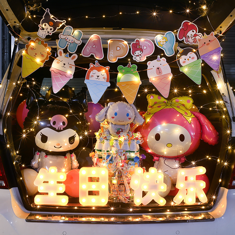 汽车后备箱惊喜礼物布置男孩女孩儿童生日周岁气球车尾箱创意场景