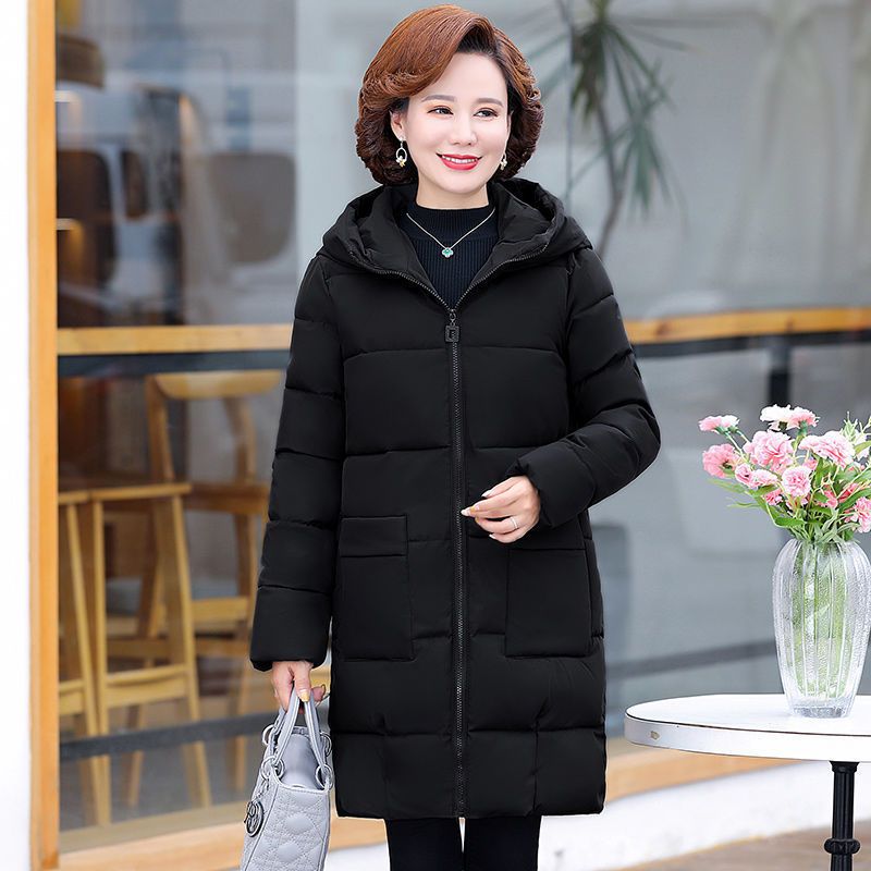 妈妈冬装加厚中长款羽绒棉服中老年人特大码连帽棉衣中年棉袄外套