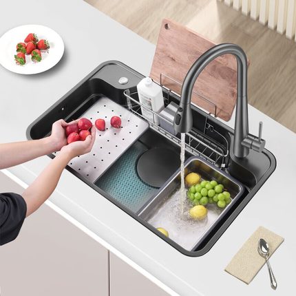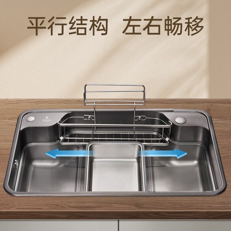 欧琳日式大单槽纳米水槽304不锈钢厨房洗菜盆枪灰色一体盆9129H