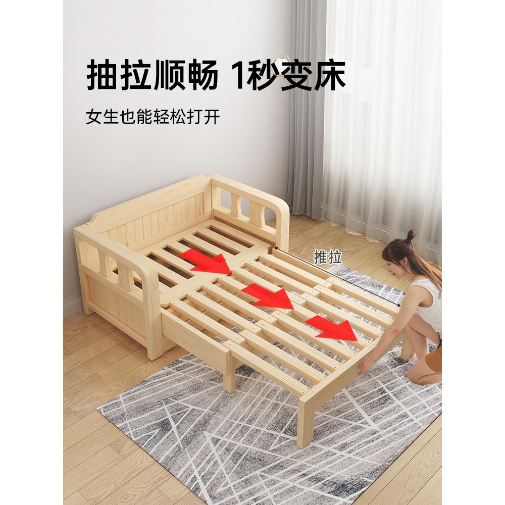 实木沙发床折叠两用多功能客厅家用单人双小户型抽拉可推拉伸缩床