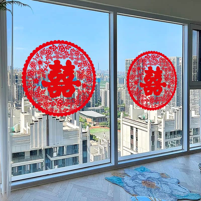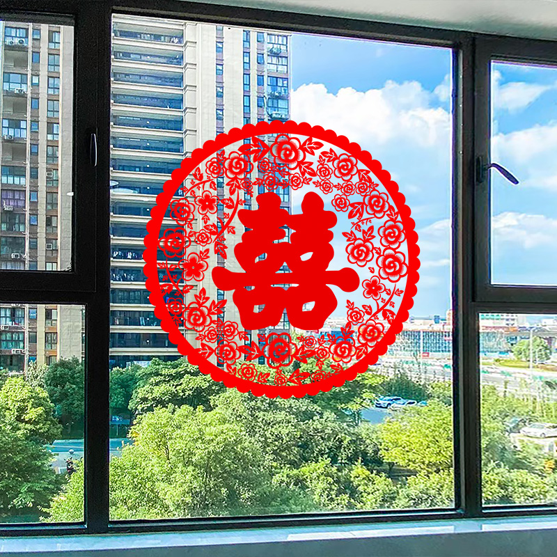 超大喜字贴结婚专用号玻璃门贴纸囍字静电贴装饰婚房布置窗户窗花