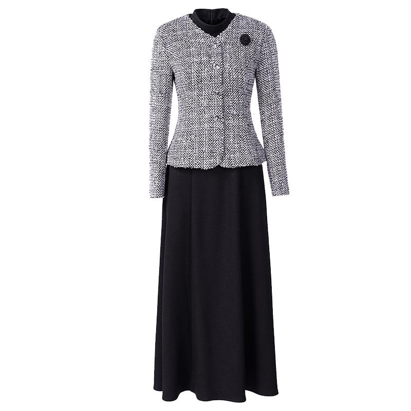 时尚小香风毛呢套装女2024冬季新款洋气小外套连衣裙两件套裙1243