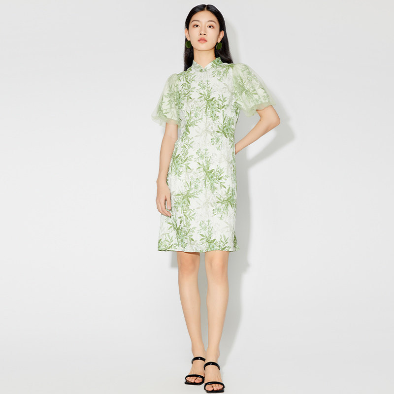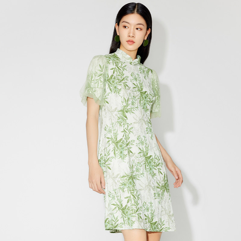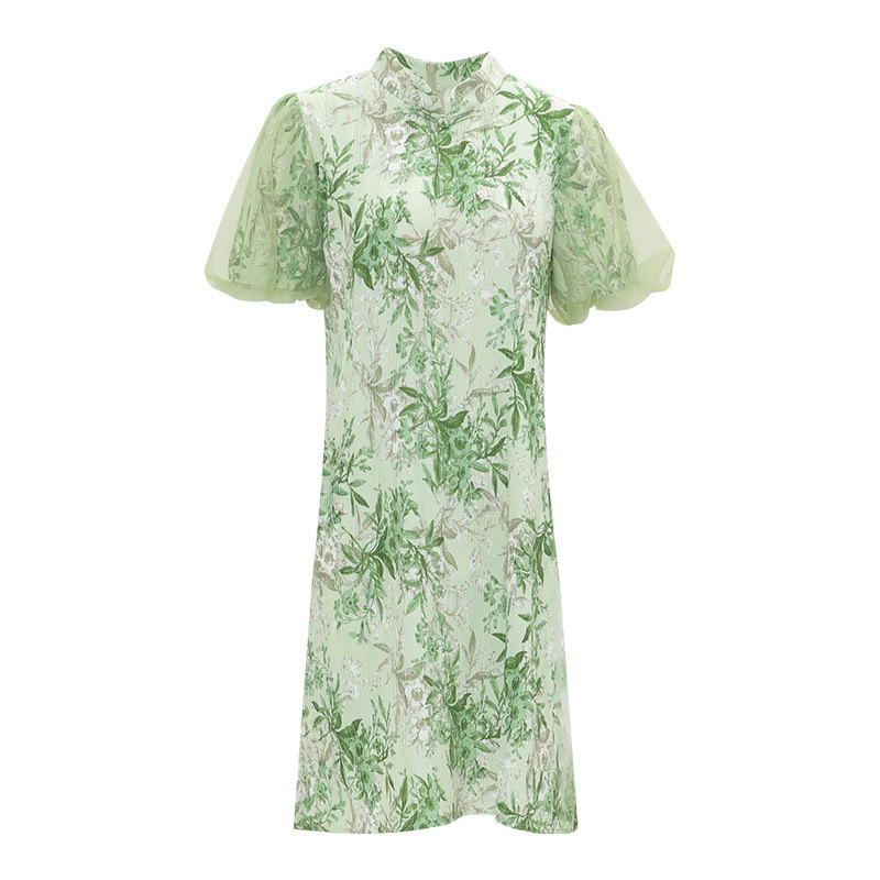 傲丝度新中式旗袍裙2025夏季时尚气质碎花连衣裙女中长款雪纺裙子