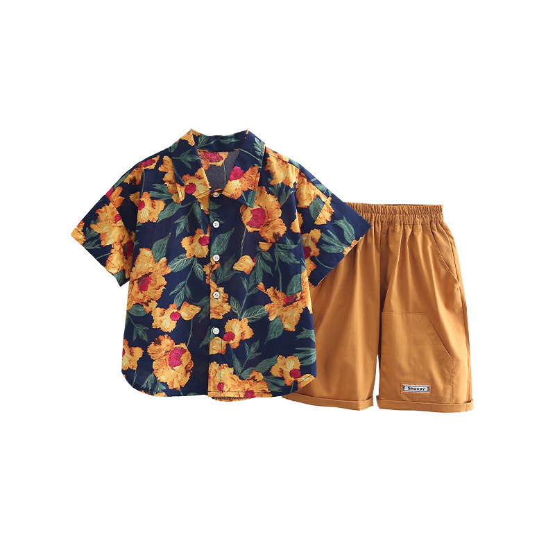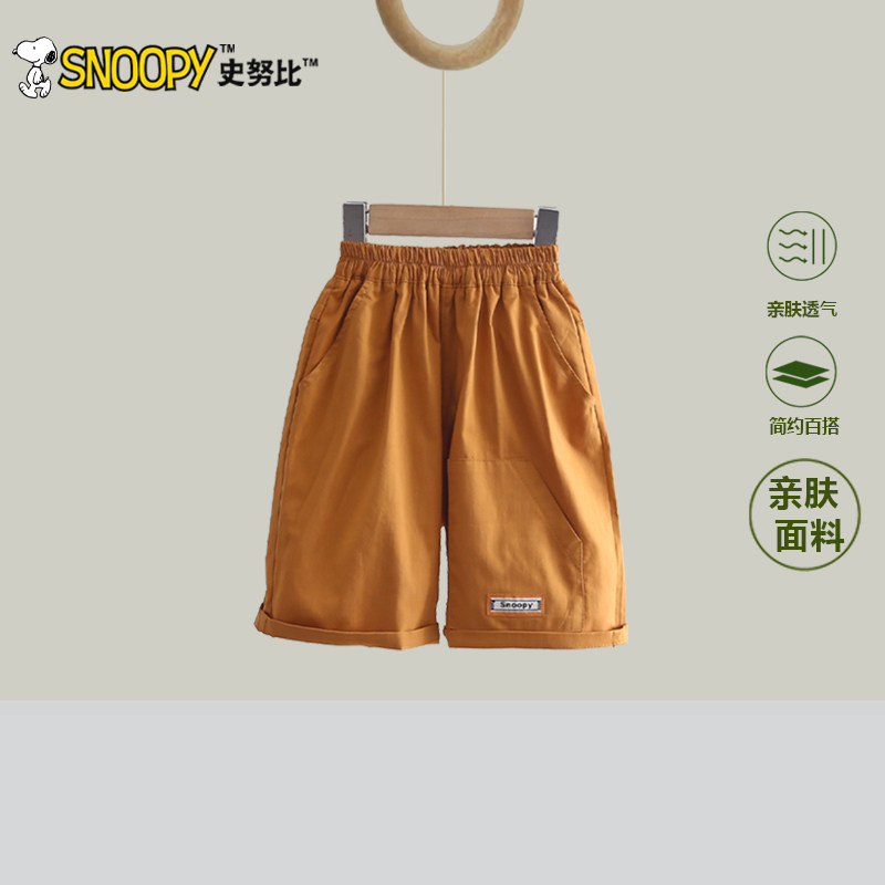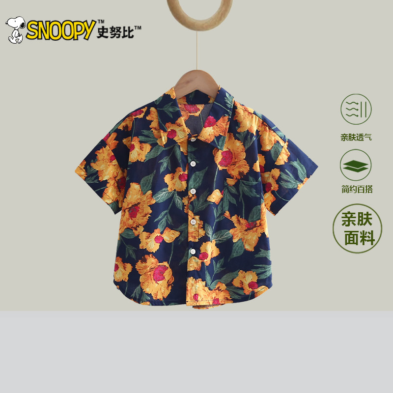史努比男童夏季套装2025新款洋气儿童纯棉短袖衬衫男孩港风两件套