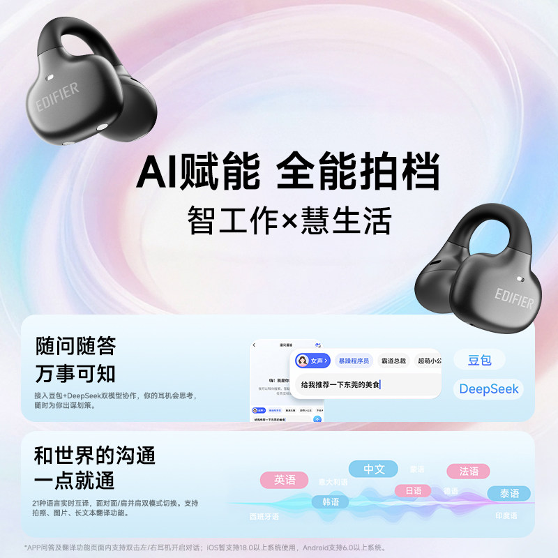 漫步者X Clip蓝牙耳机耳夹式无线开放式不入耳挂耳运动跑步专用新