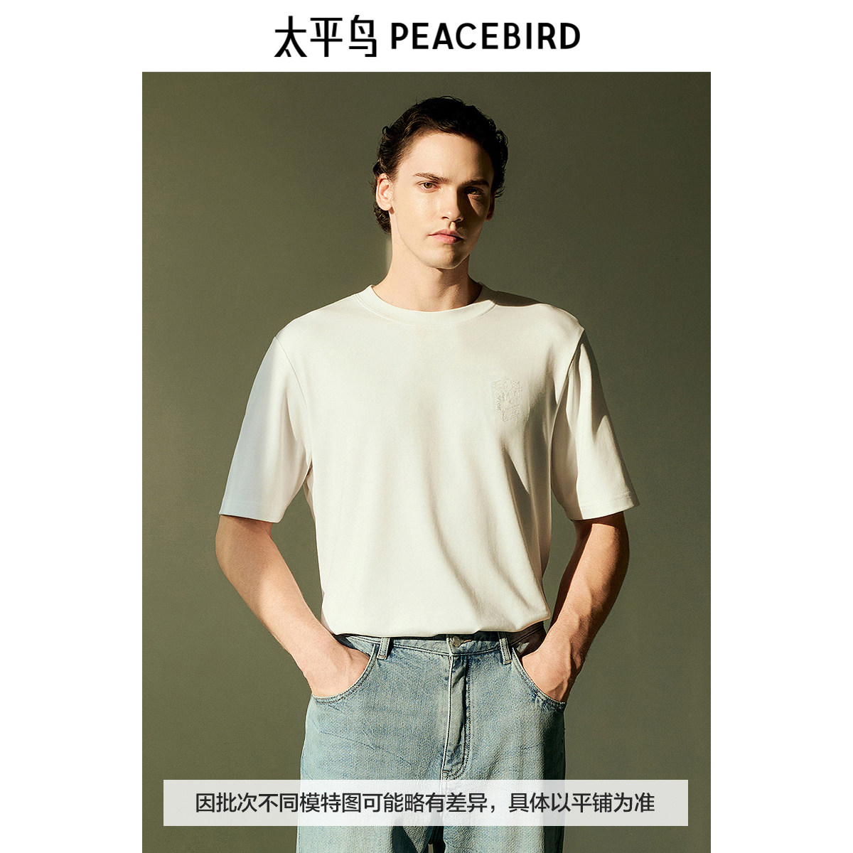 太平鸟男装T恤春夏刺绣净色刺绣短袖 B1CNF1430