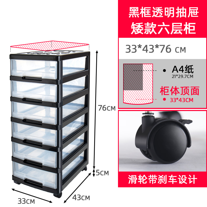 文件整理柜塑料收纳箱抽屉式收纳柜多层透明柜子带滑轮文件收纳