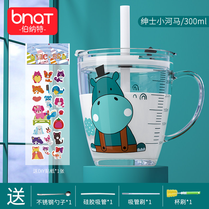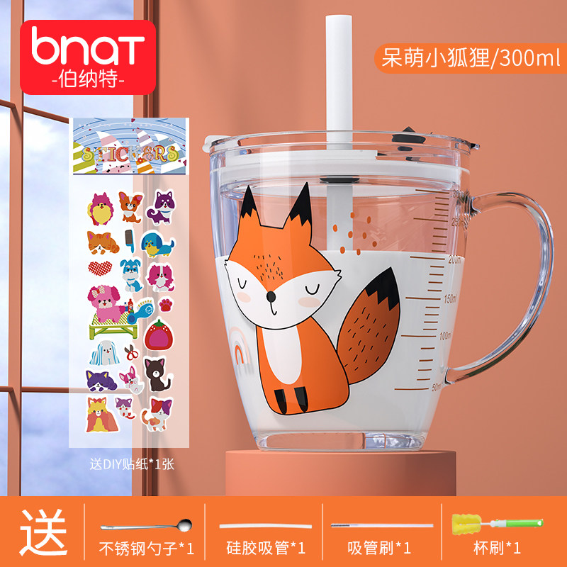 儿童牛奶杯带刻度宝宝水杯喝奶杯泡冲奶粉专用杯子V玻璃吸管杯防