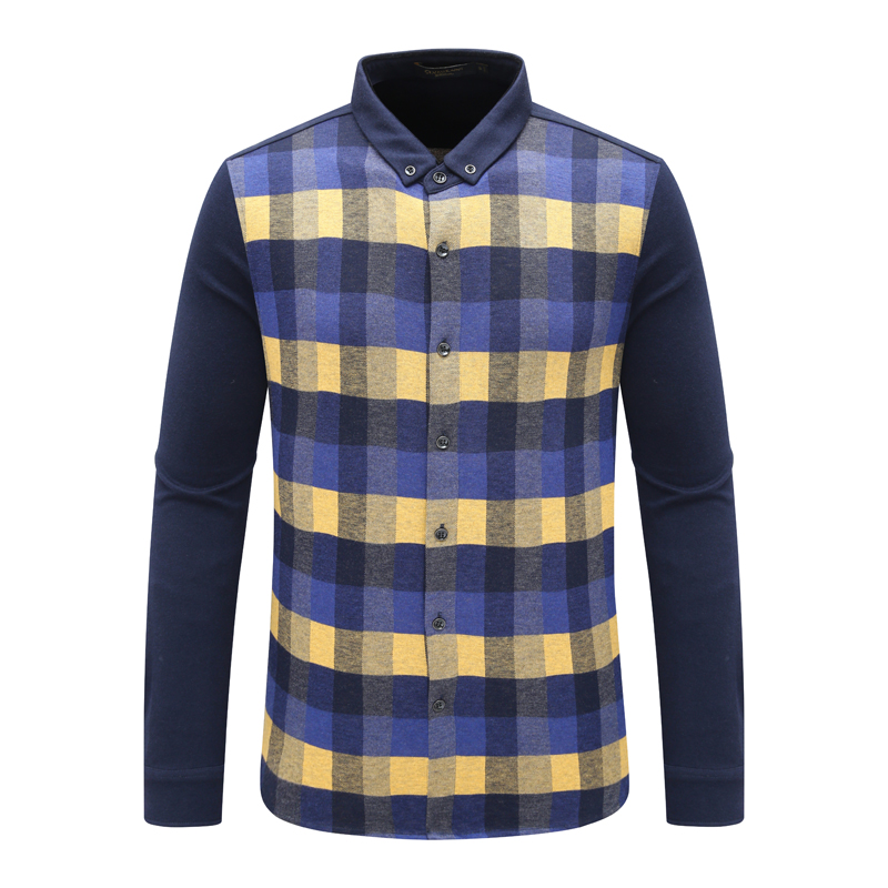 SF139圣换季断码清仓秋季厚款男士48%羊毛休闲拼色格子长袖衬衫