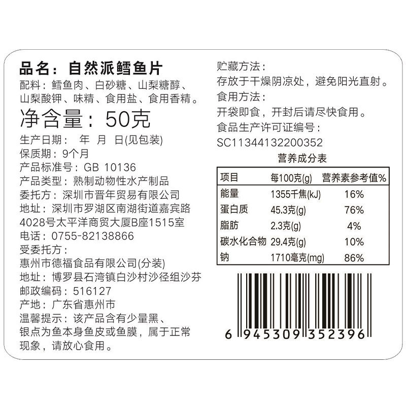 自然派鳕鱼片50g烤鱼片小吃鱼片干货手撕风干特产海鲜休闲小零食
