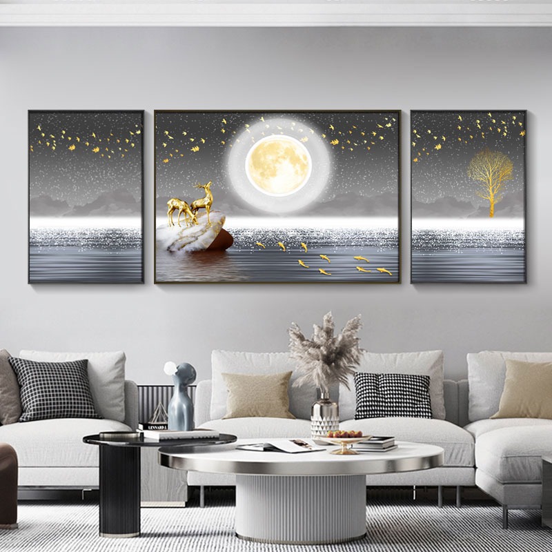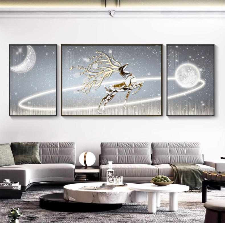 工厂客厅装饰画现代轻奢壁画麋鹿三联画晶瓷画沙发背景墙挂画