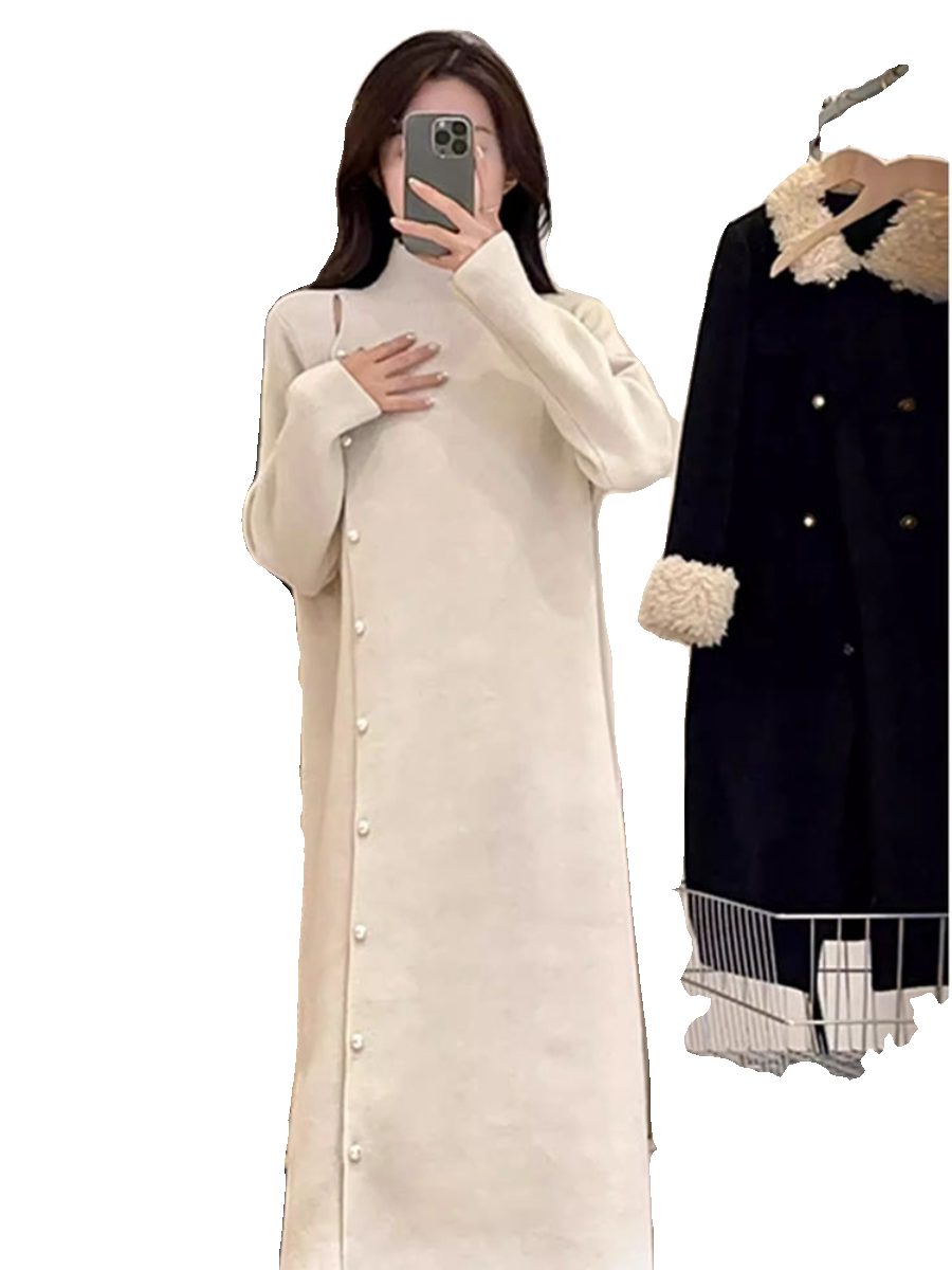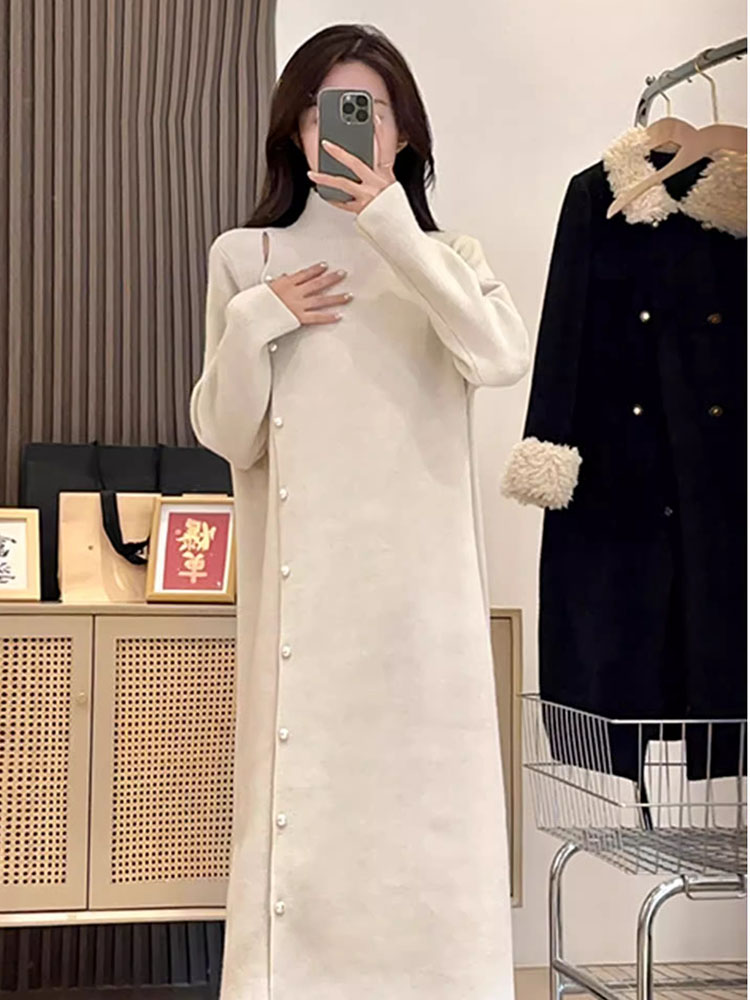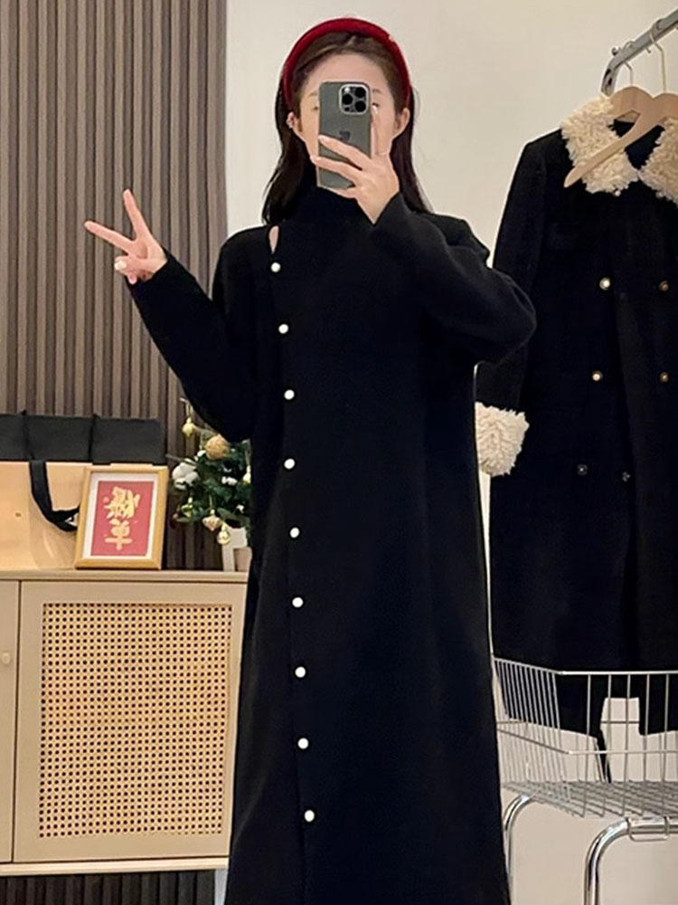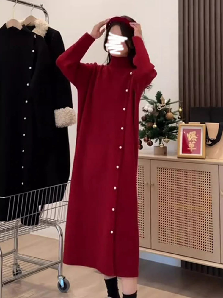 圣诞新年红色针织连衣裙冬新款法式气质打底毛衣裙高级感内搭长裙