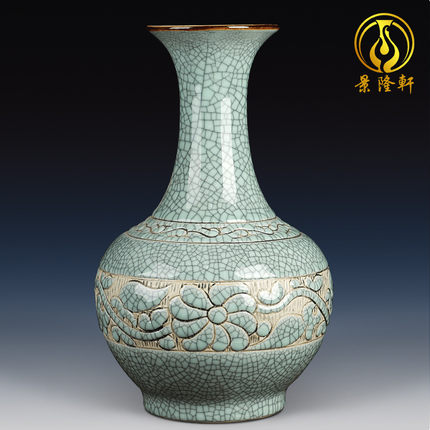 景德镇陶瓷器花瓶中式雕刻复古做旧瓷瓶子赏瓶古典客厅装饰品摆件