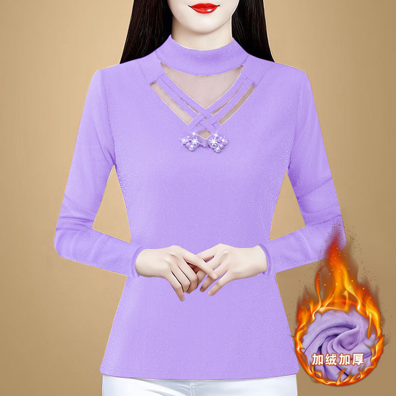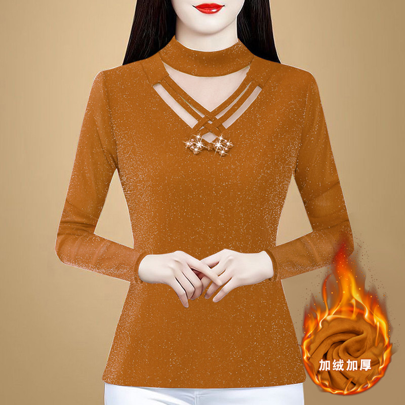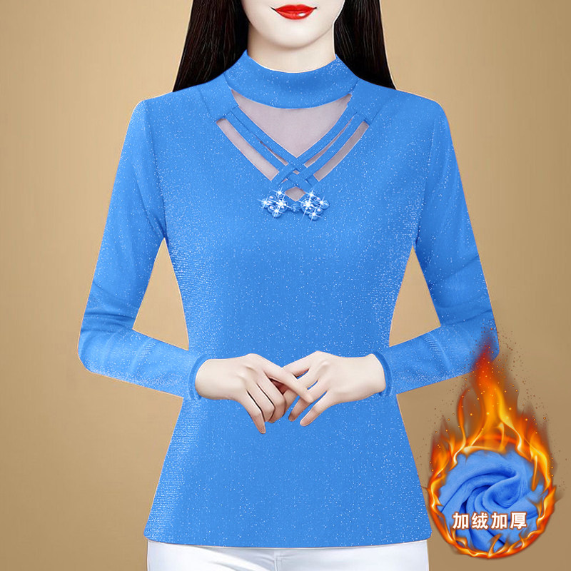 冬季新款保暖内衣女加厚加绒上衣紧身外穿百搭蕾丝发热打底衫大码