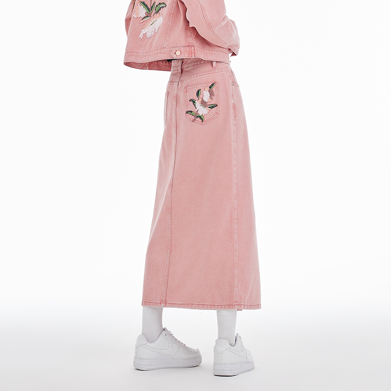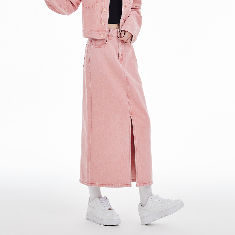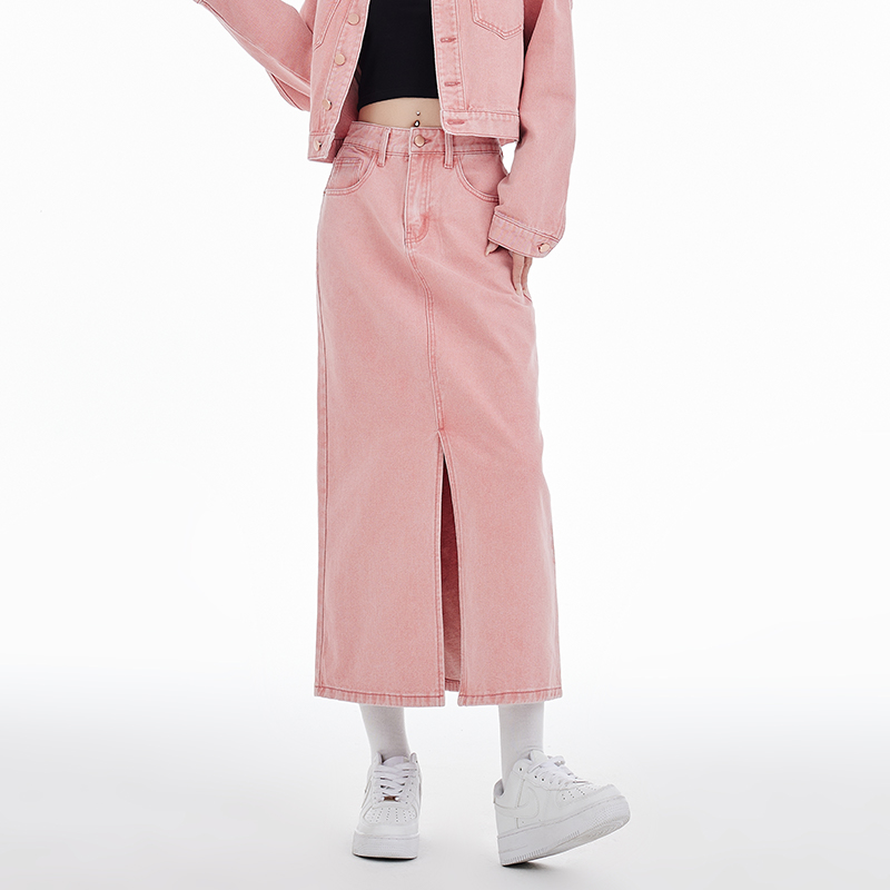 粉色牛仔半身裙夏季2025新款小个子高腰a字裙长款开叉显瘦长裙女