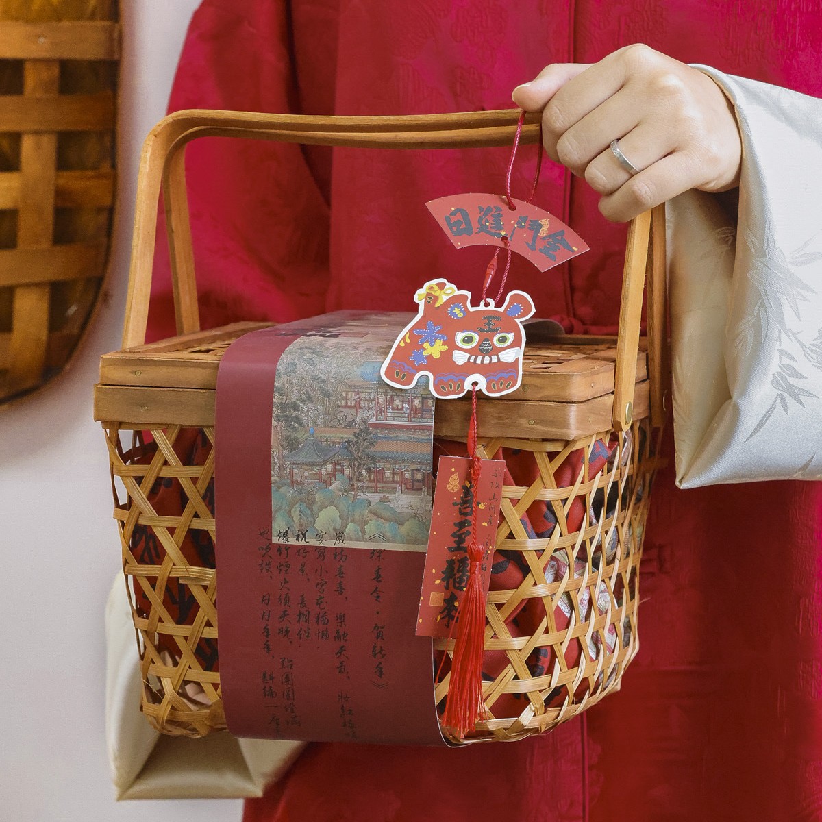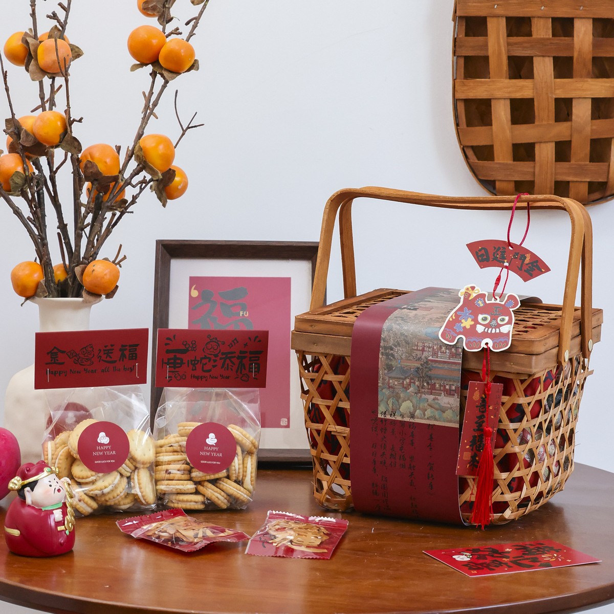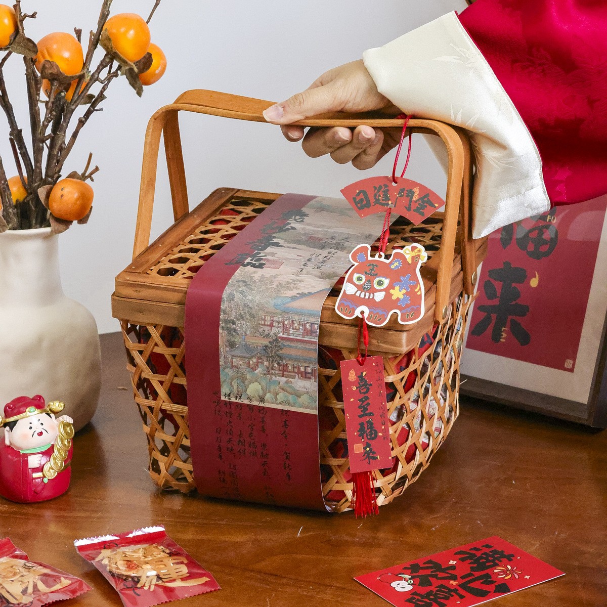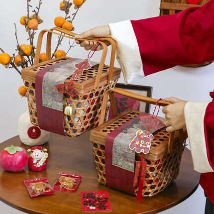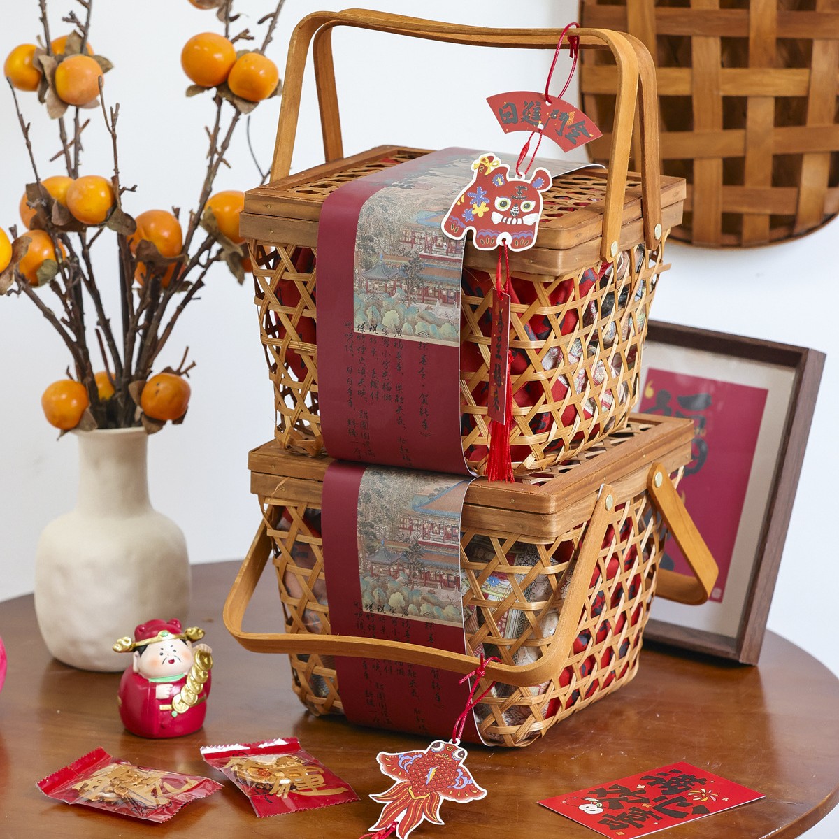 2026新年礼盒包装饼干烘焙坚果年货特产糕点马年会中式竹编礼品篮