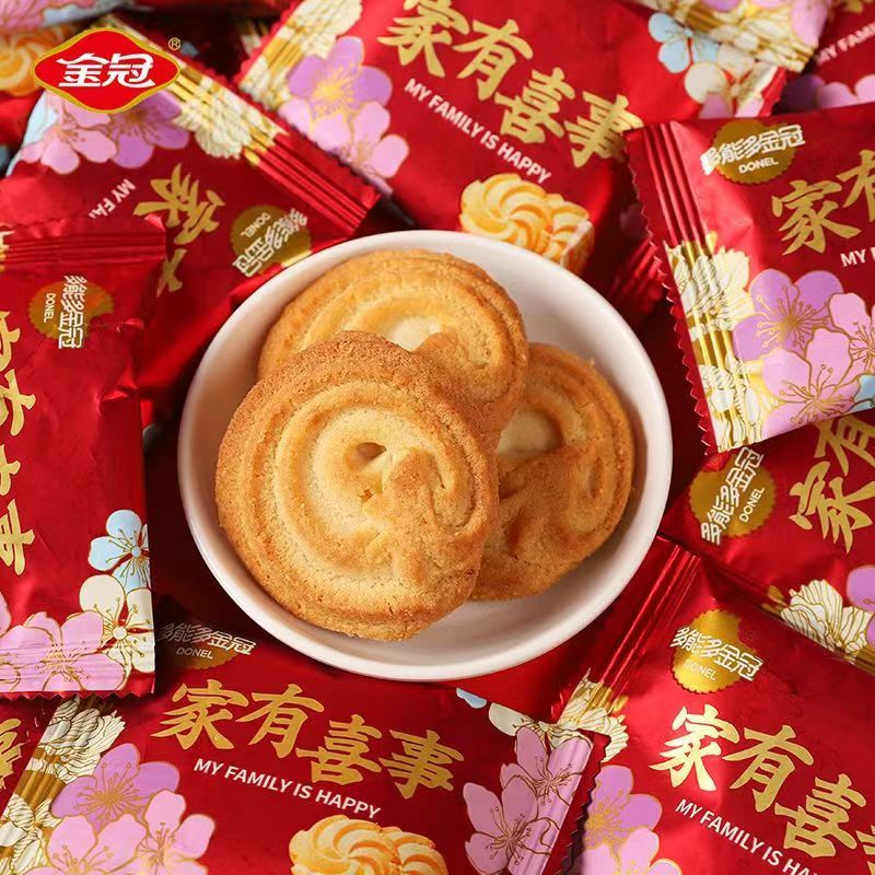 多能多金冠家有喜事牛奶味曲奇饼干结婚喜饼婚礼专用订婚喜糖批发
