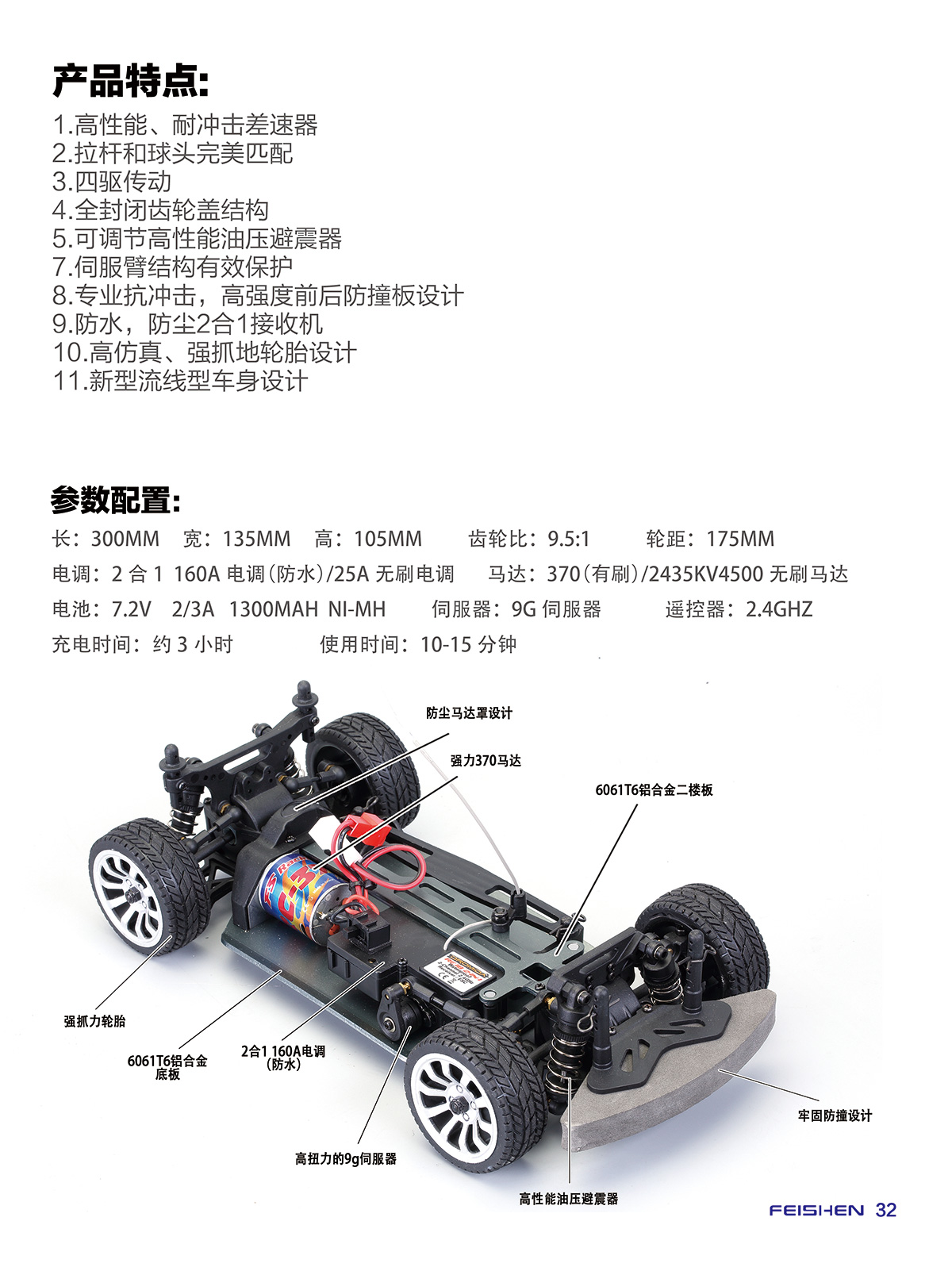 整车顺丰包邮飞神1/16 电动平跑车幻影 1/16房车 73106 ET4