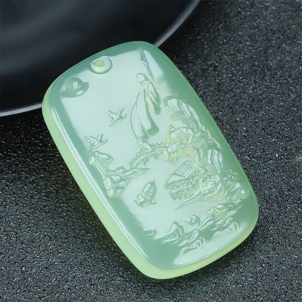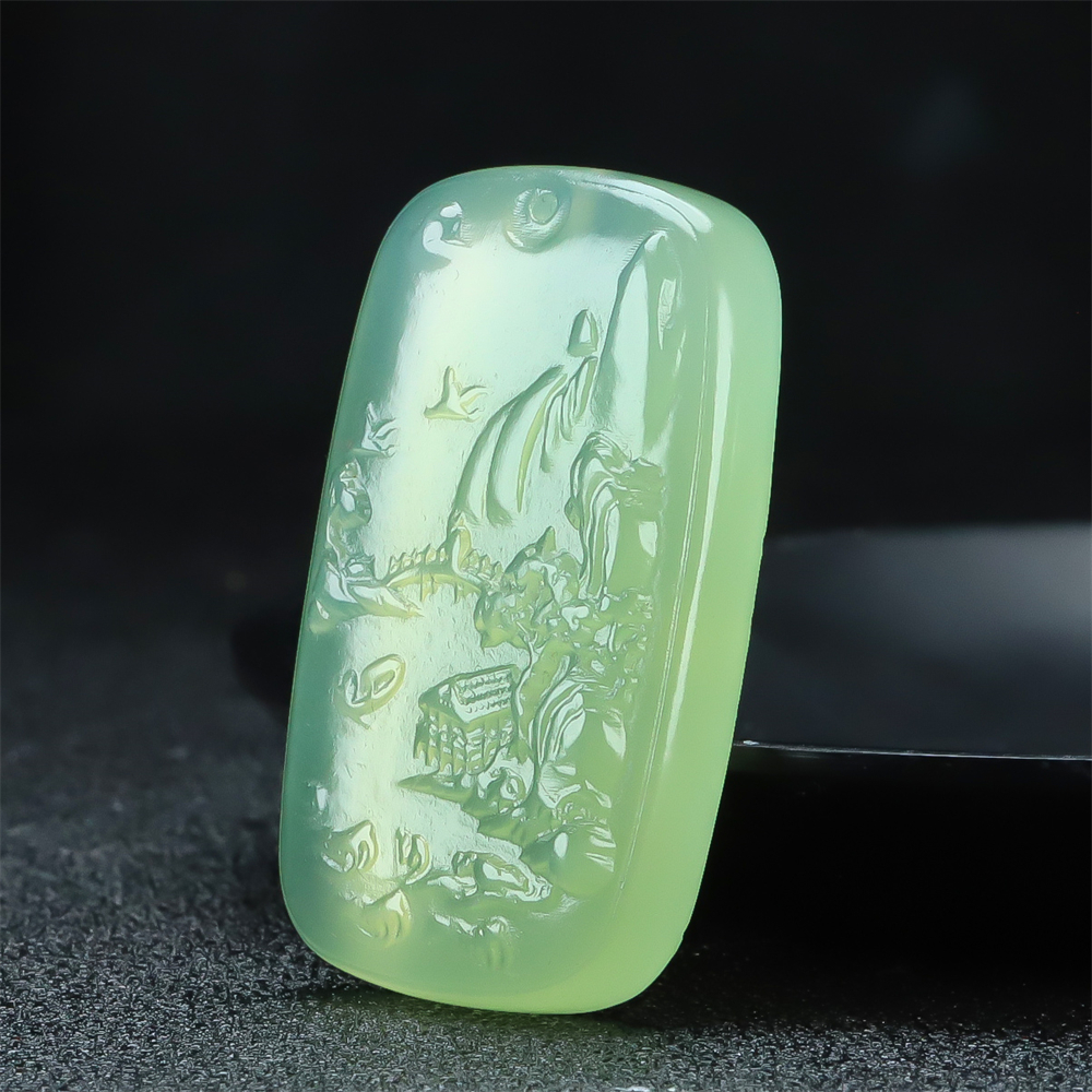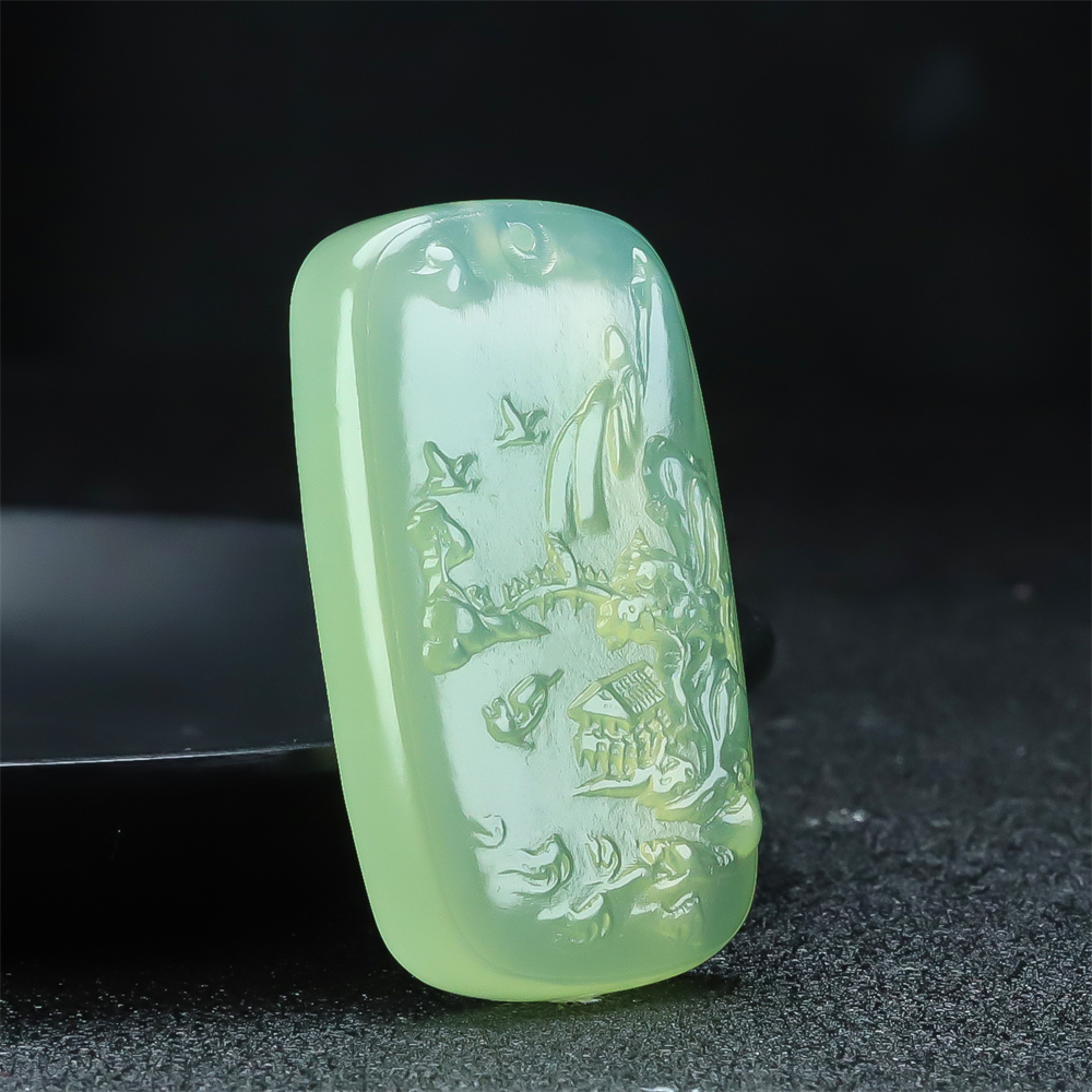 送证书天然高冰种浅绿色湖水绿岫玉流水生财山水牌玉石吊坠挂件