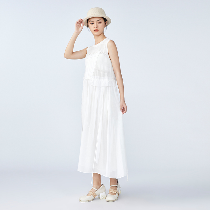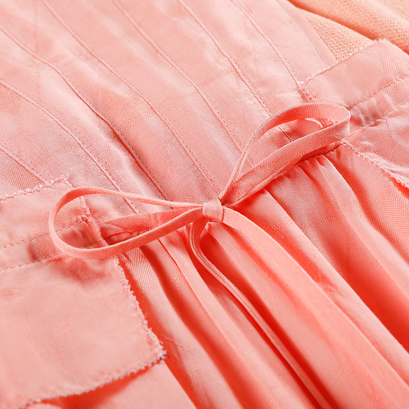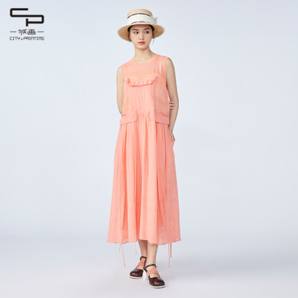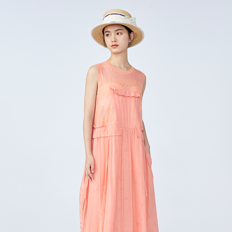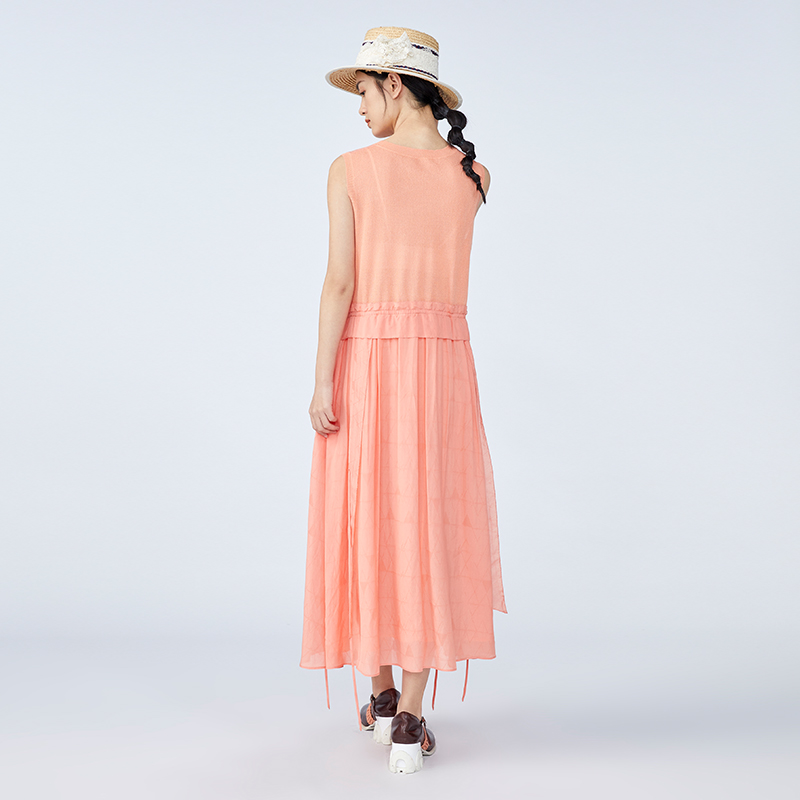 一城画一夏季文艺范复古显瘦垂坠感毛织拼接修身长裙连衣裙桔色