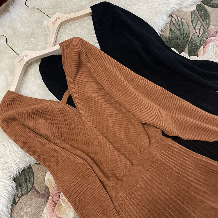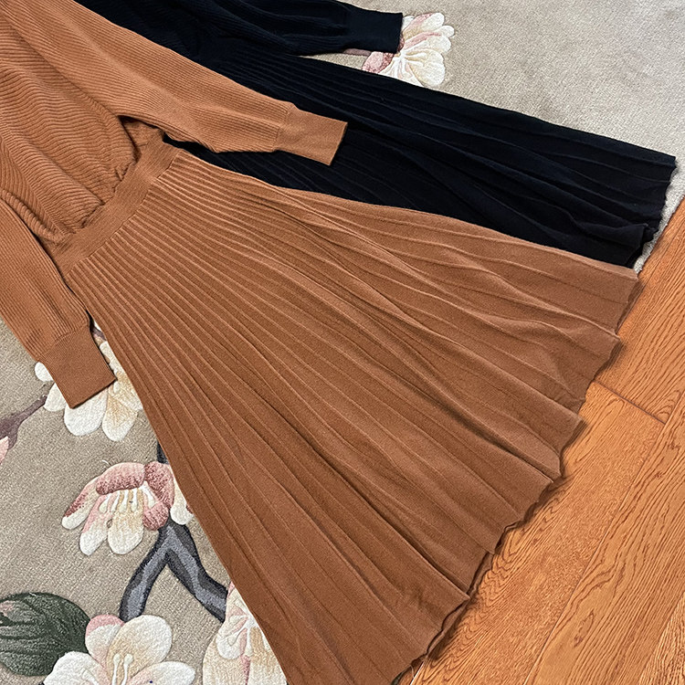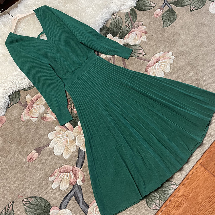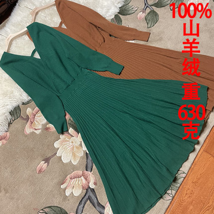 山羊绒裙高端大牌洋气V领羊绒针织连衣裙过膝羊绒加厚长裙新款冬