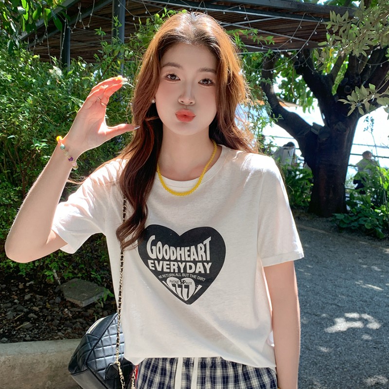 龙妹家白色正肩圆领棉麻印花短袖T恤女2025夏季新款竹节棉小上衣