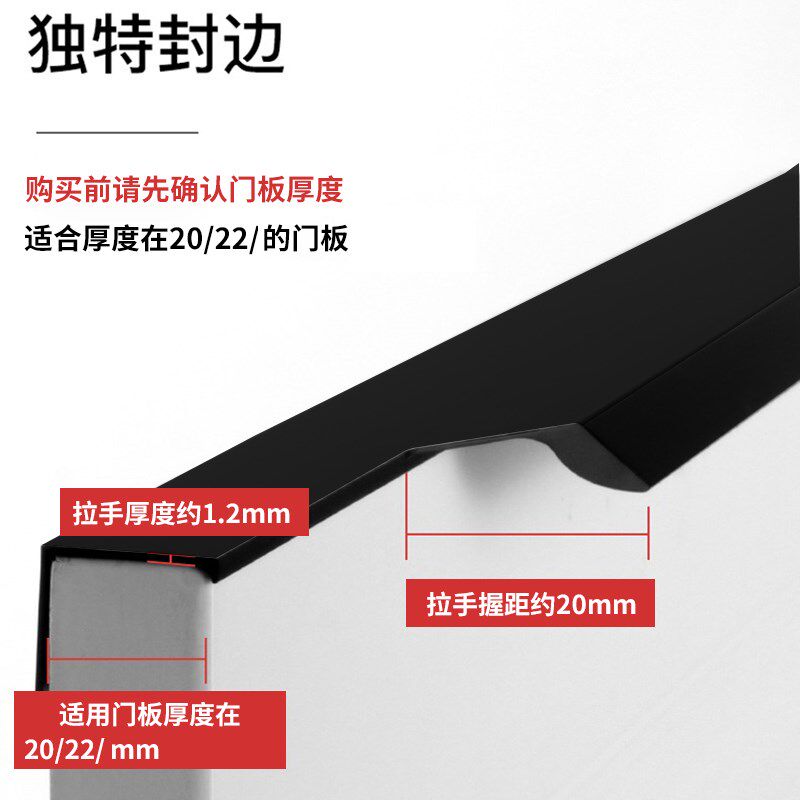 热销拇指侧装一门到顶衣柜门拉手通顶黑色加长门把手20/22mm门板