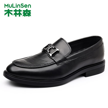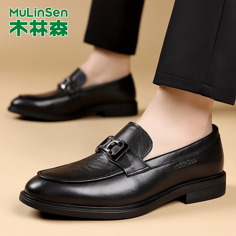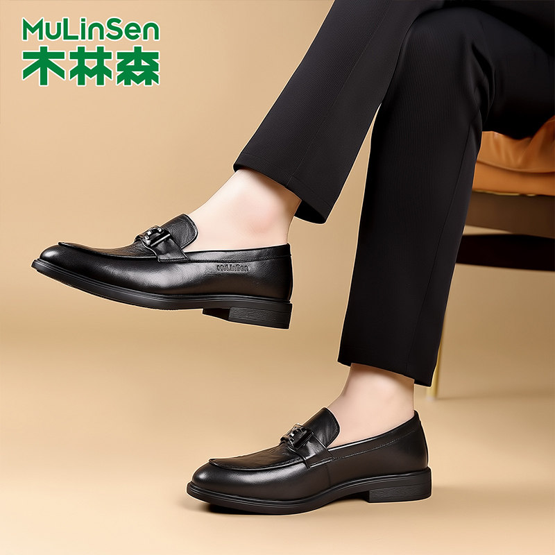 木林森皮鞋男头层真牛皮正装商务休闲秋季英伦风豆豆乐福男鞋冬季