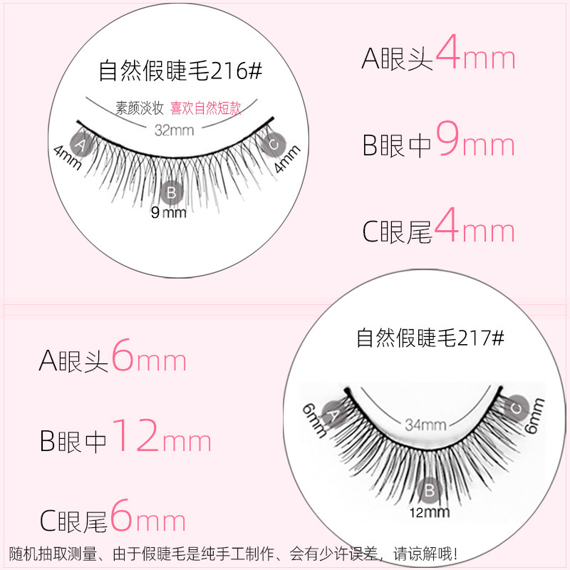 纯手工假睫毛216女217自然仿真日常柔软棉线梗一片式整条贴眼睫毛