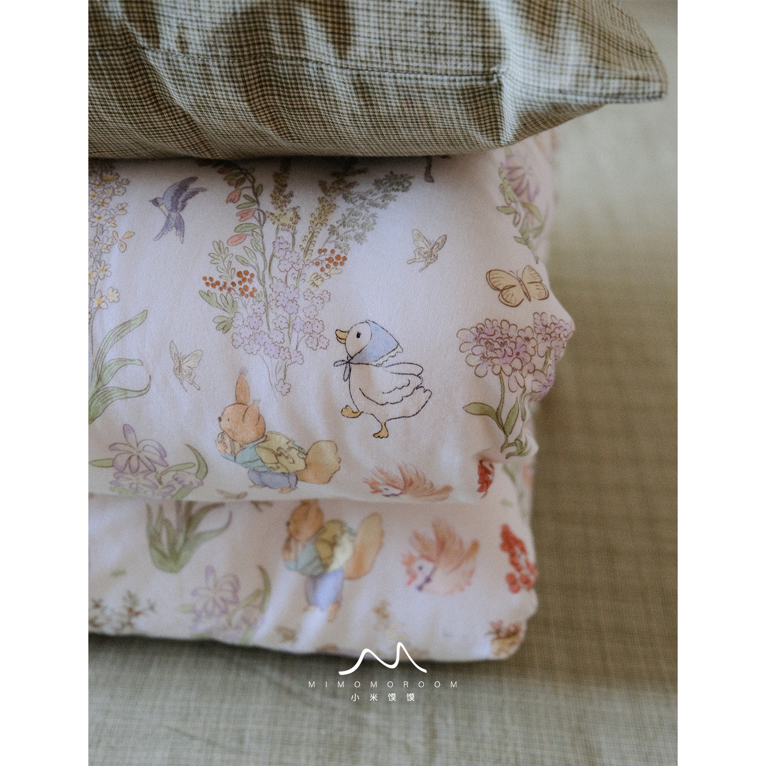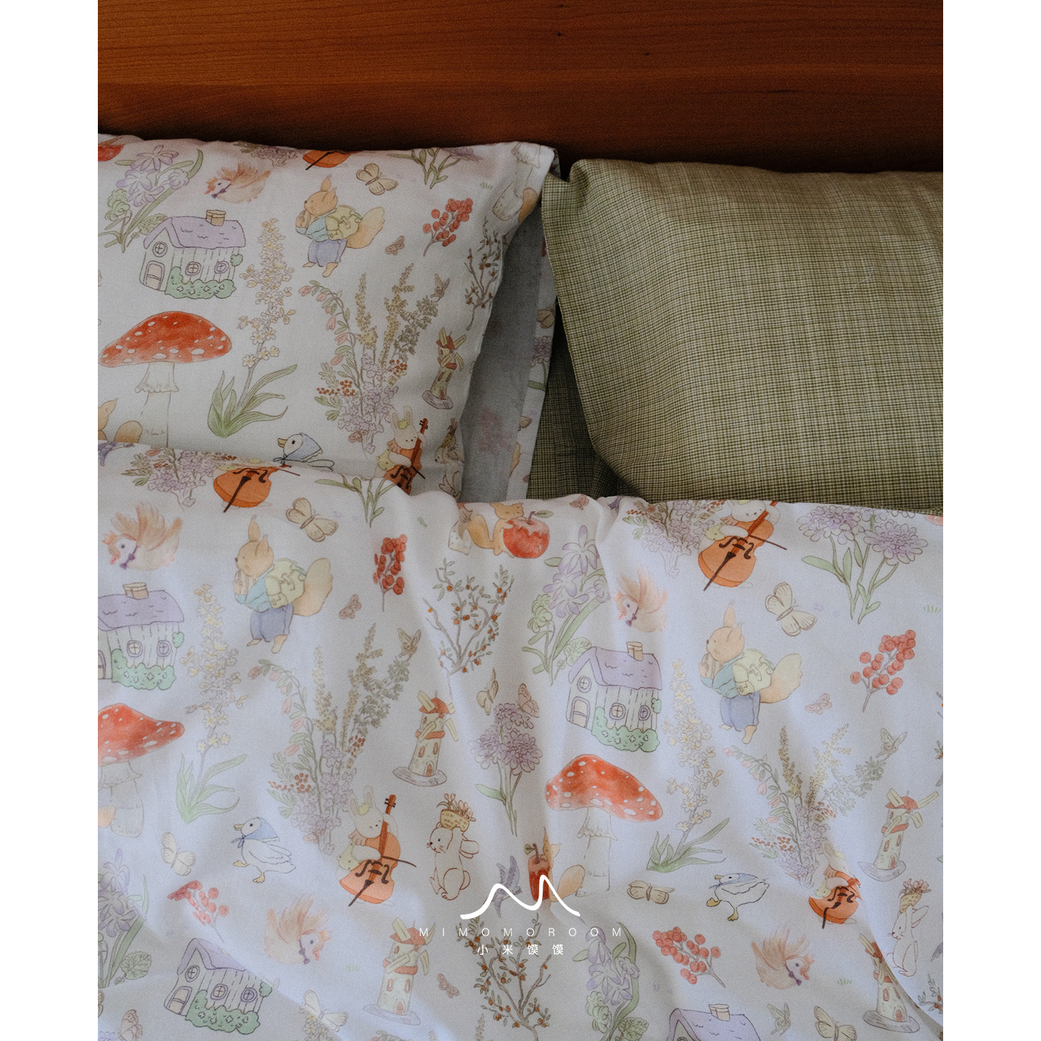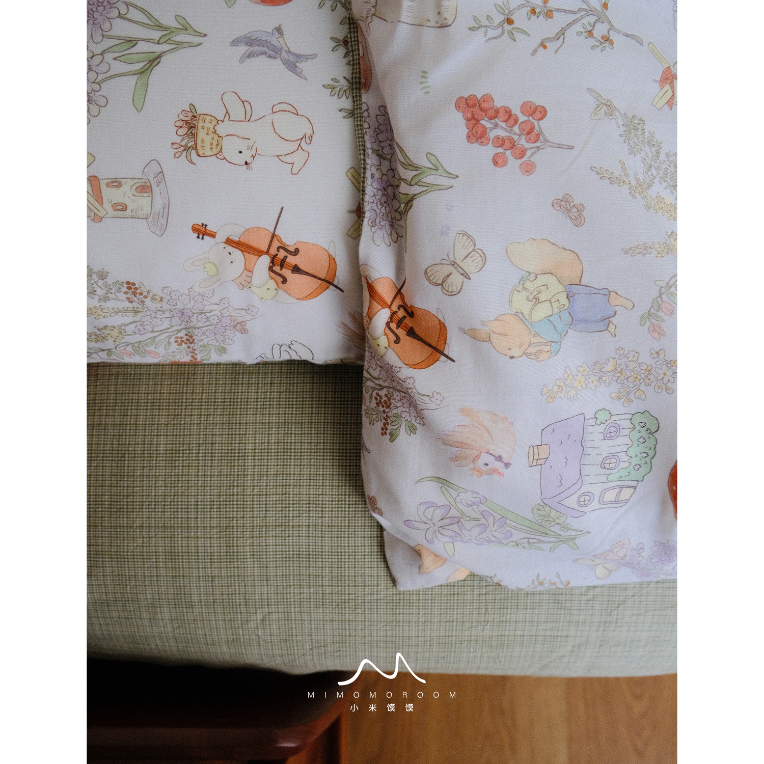 森林童话绘丨纯棉纱布手绘萌趣小动物格纹枕套床单四件套1.5m床品
