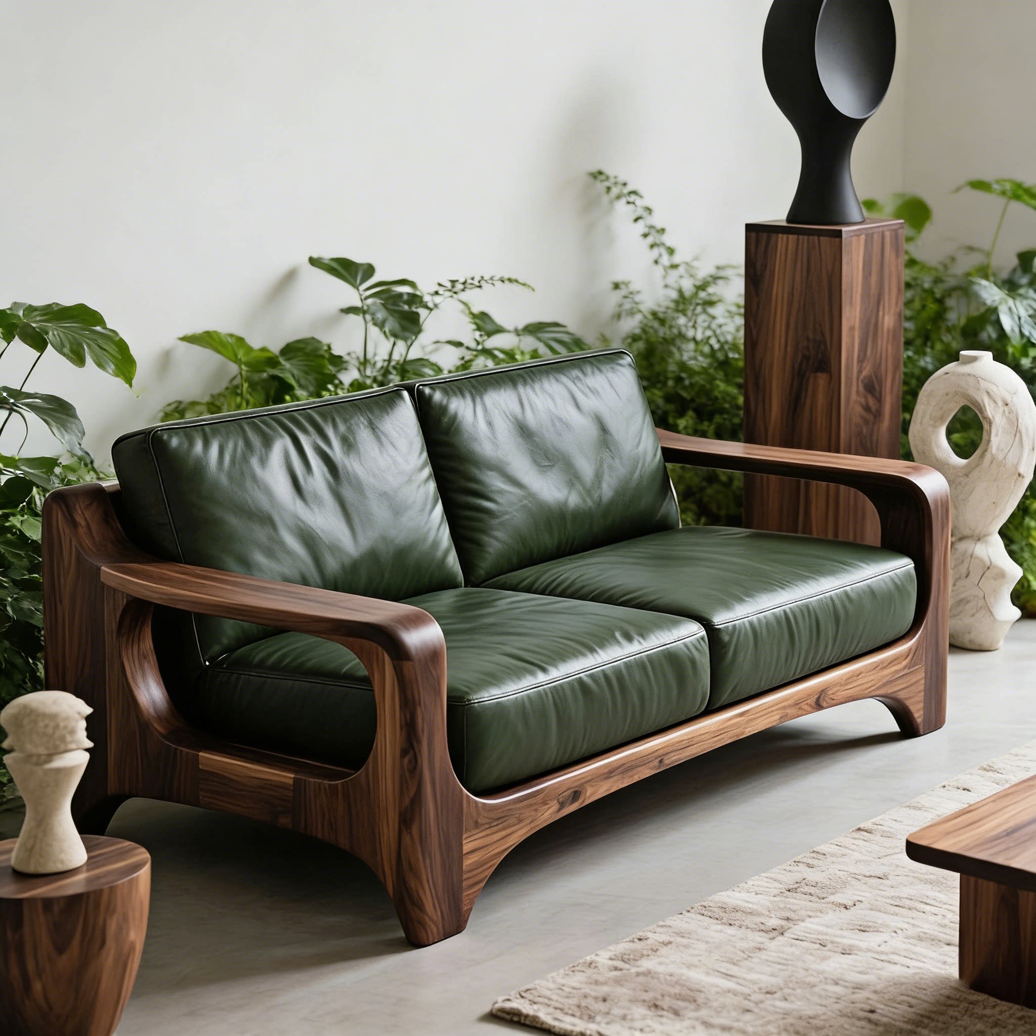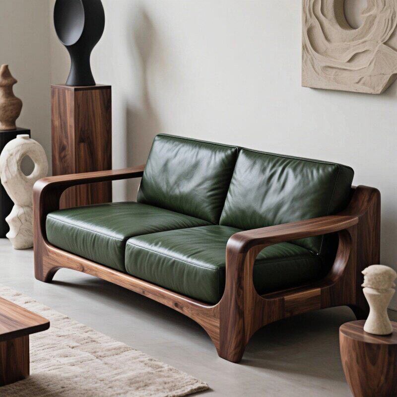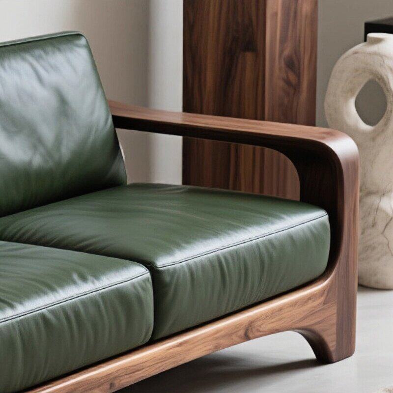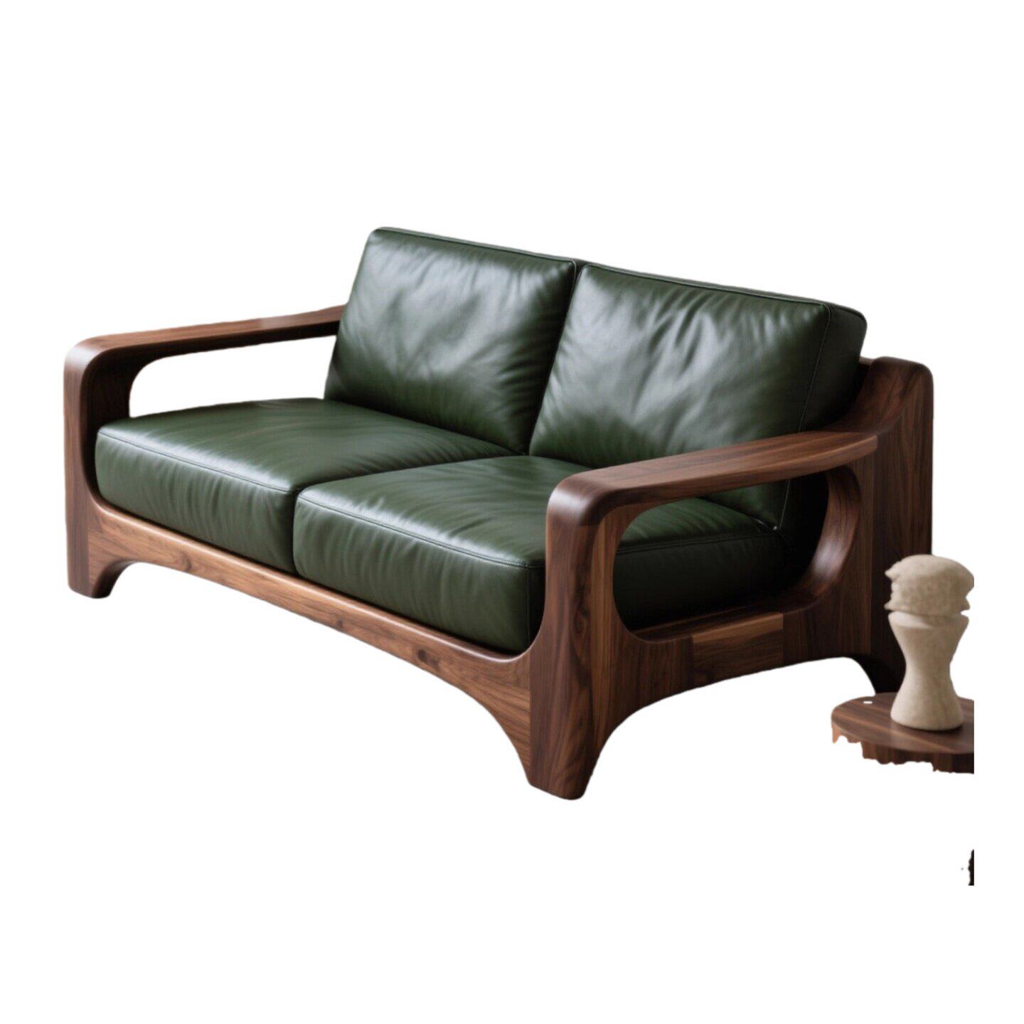 新中式现代简约实木沙发黑胡桃木家用客厅直排皮艺沙发三人位新款