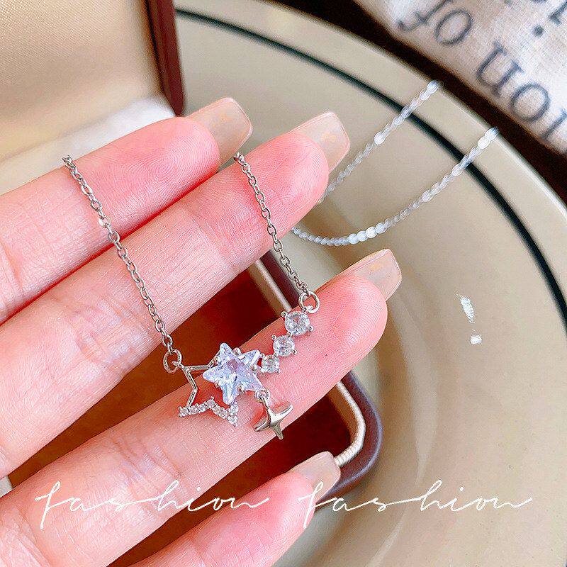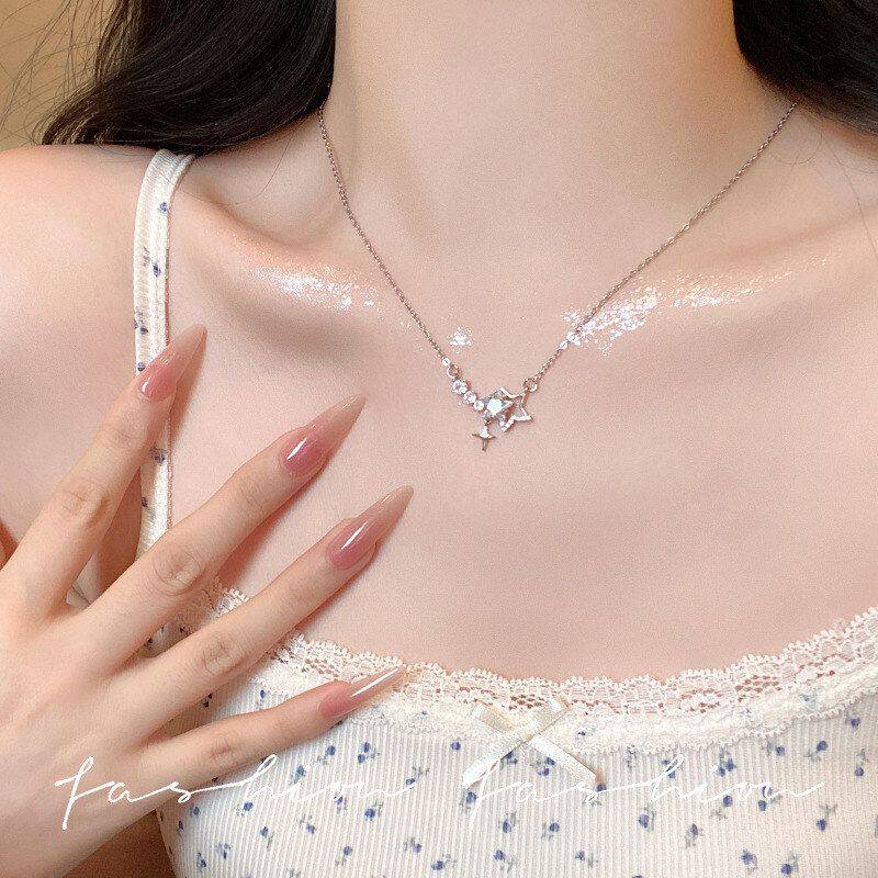 爆款双子星钛钢项链轻奢小众设计感锁骨链时尚高颜值显白颈链配饰