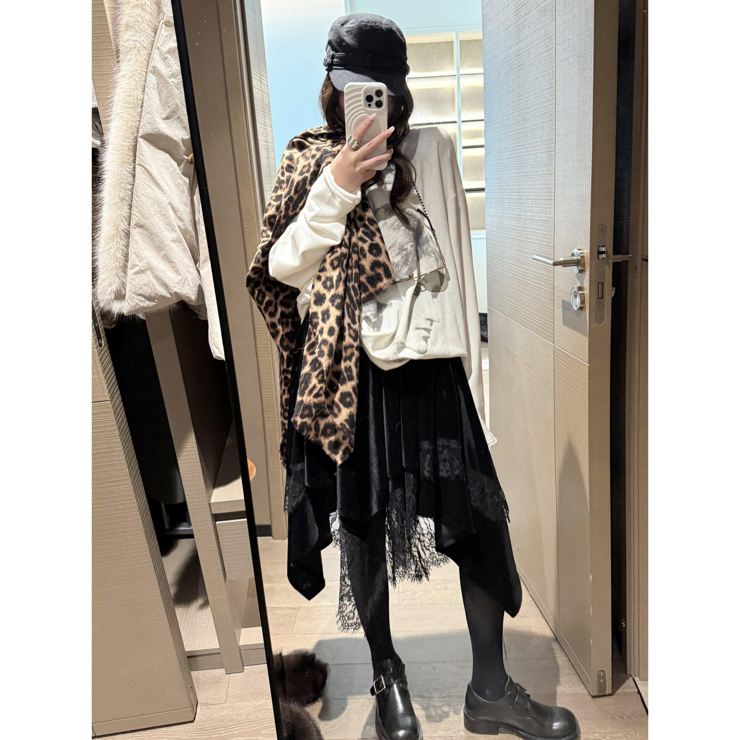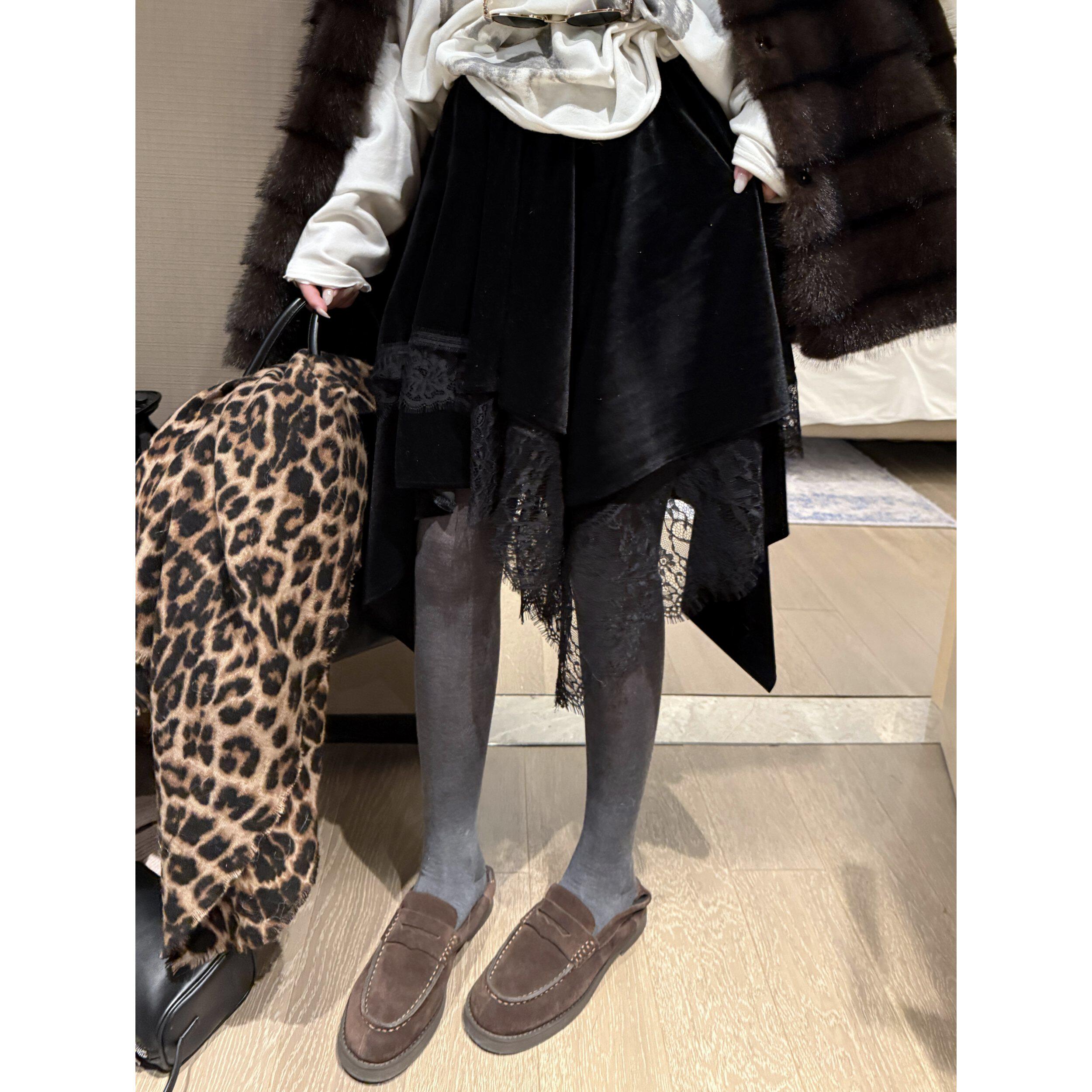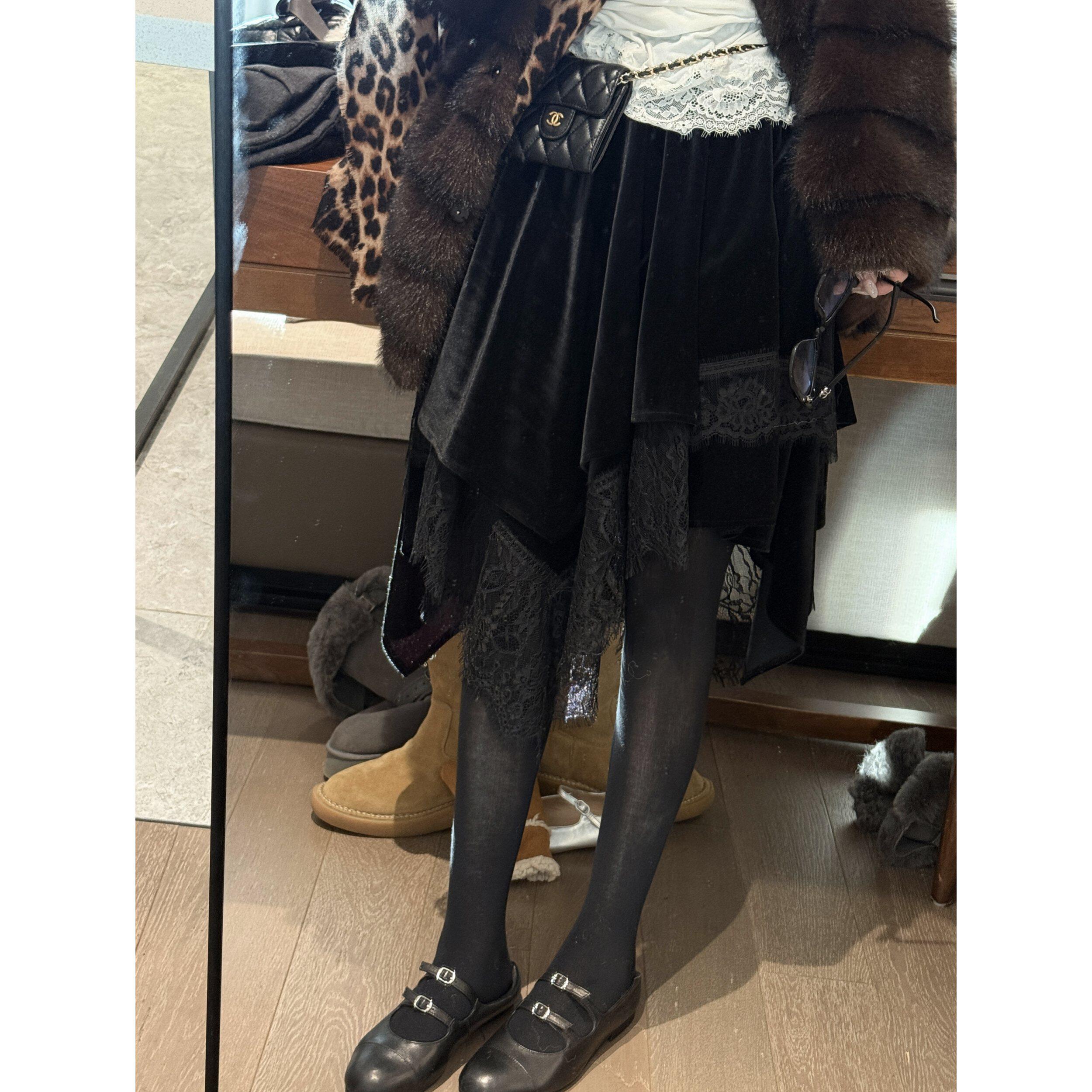 FILLE|丝绒不规则中裙 复古氛围感蕾丝花边中长款遮肉显瘦半身裙
