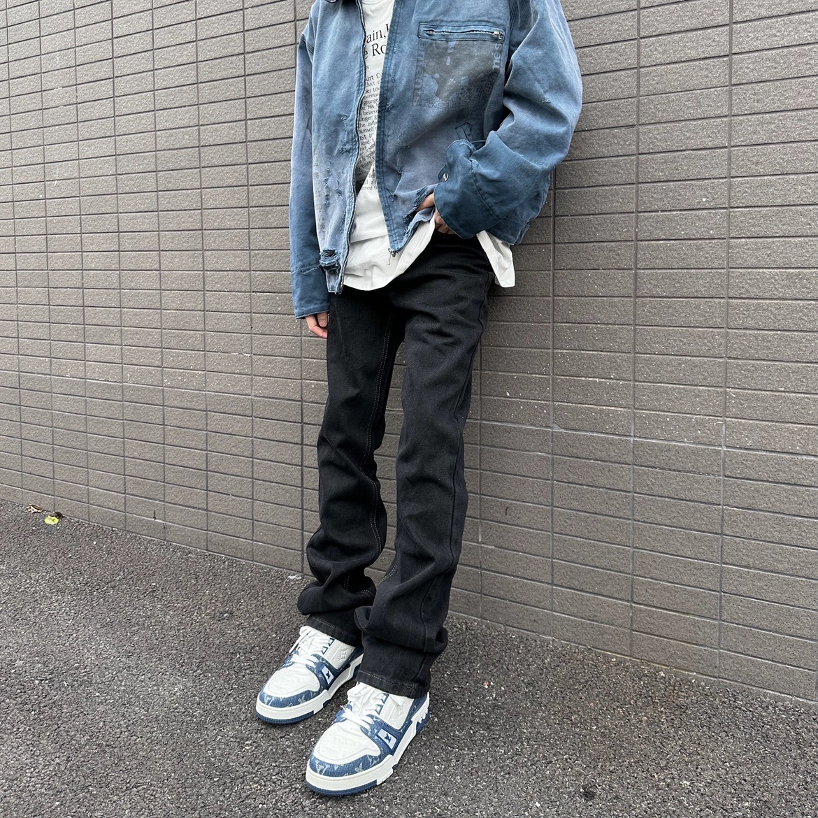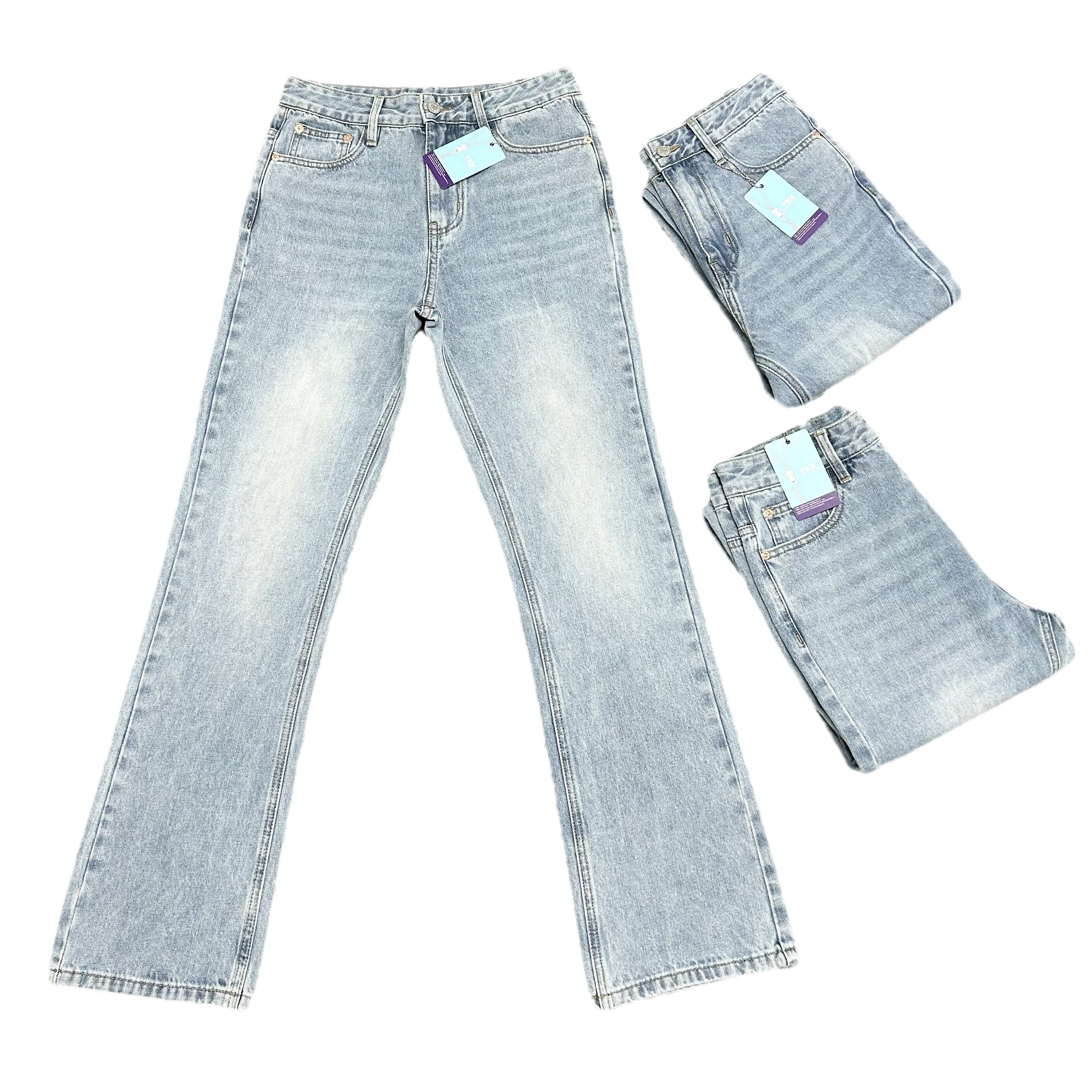 cleanfit冰蓝517风格水洗复古牛仔裤微喇做旧vibe风kennijima同款