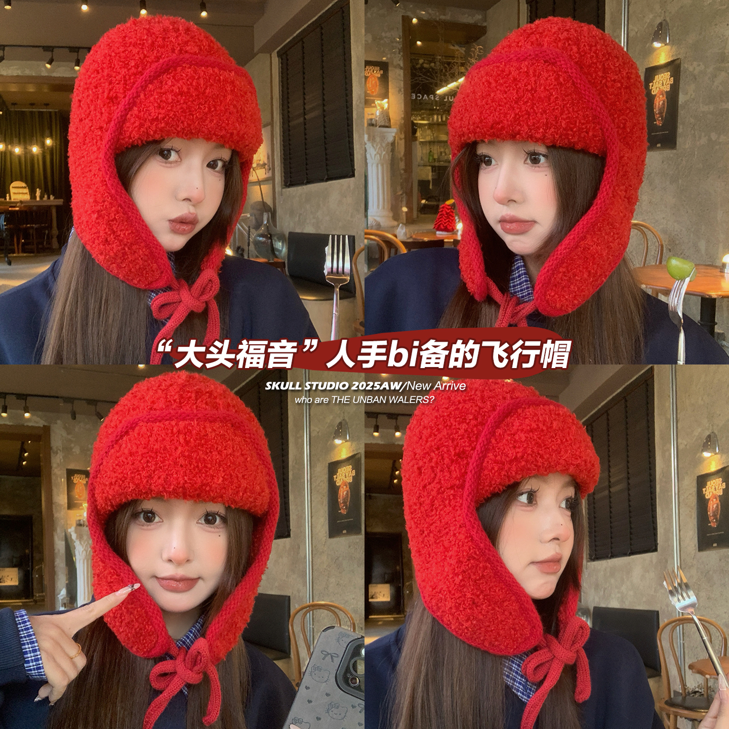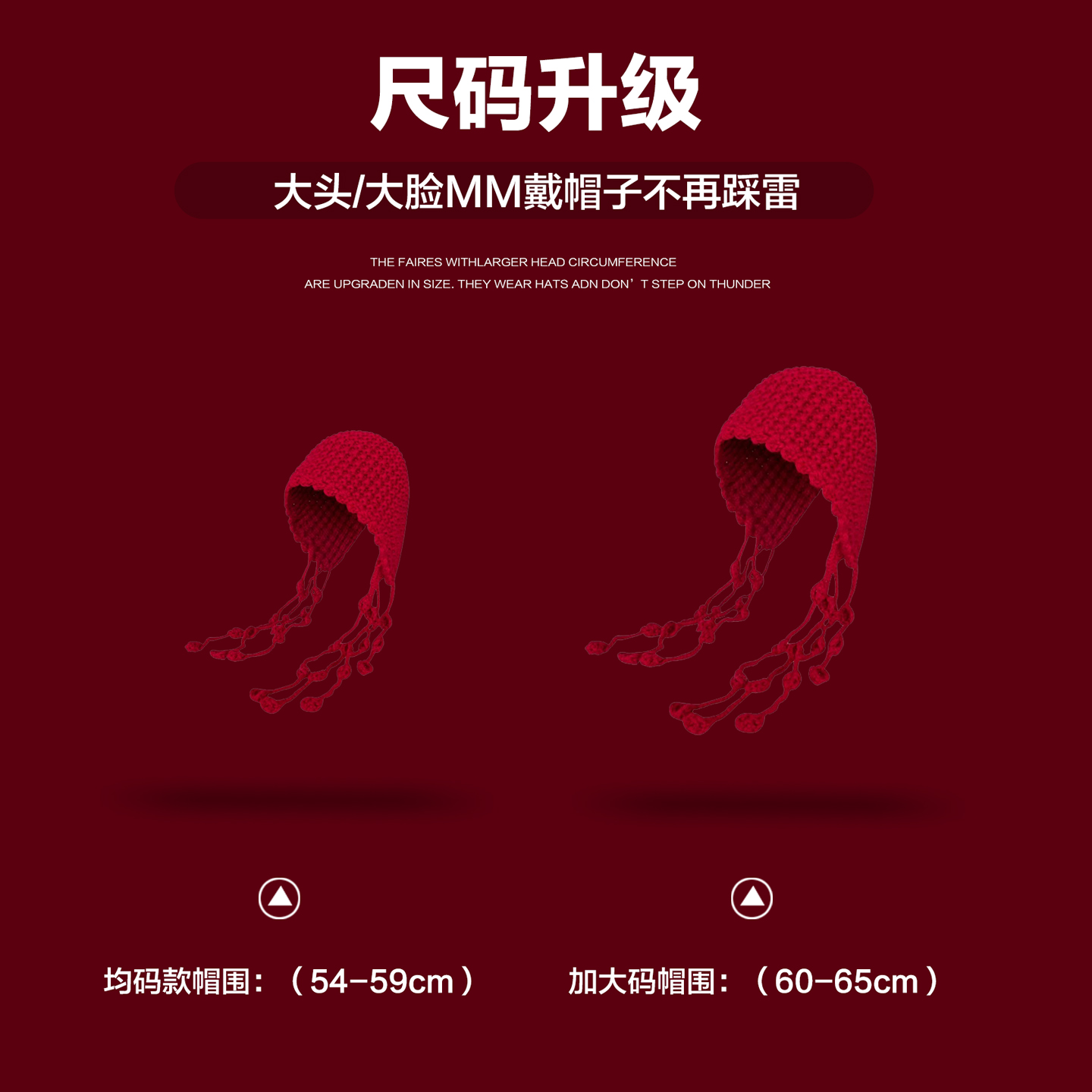 大头围红色帽子毛绒秋冬针织帽