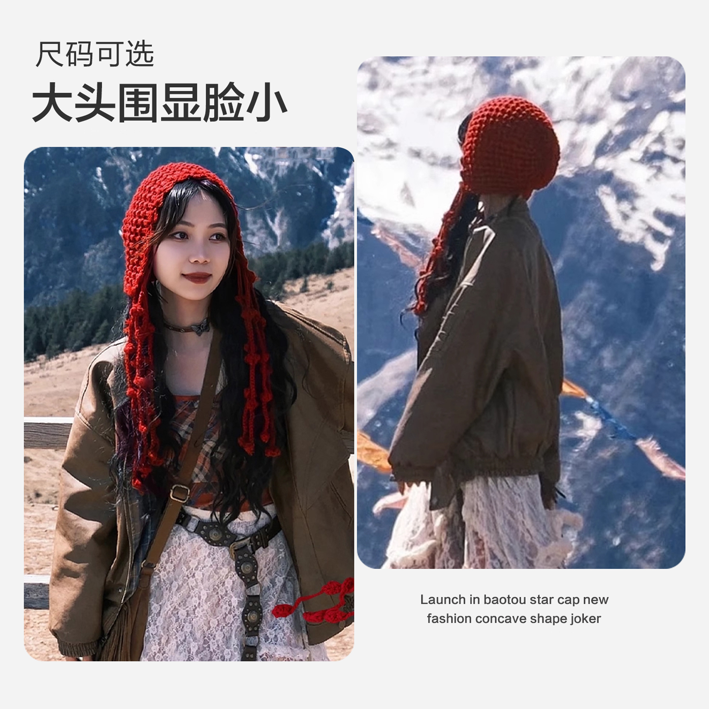 大头围红色帽子毛绒秋冬针织毛线帽巴拉克拉法帽围巾一体雷锋帽