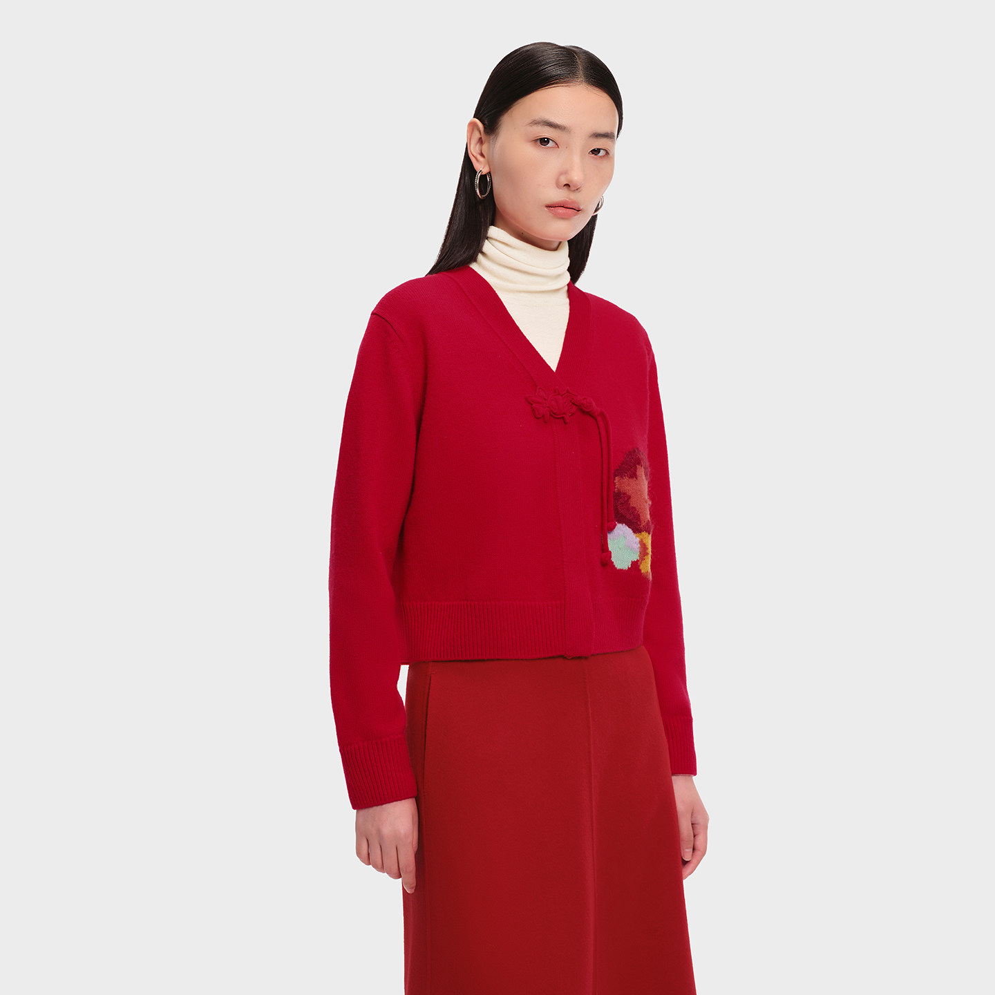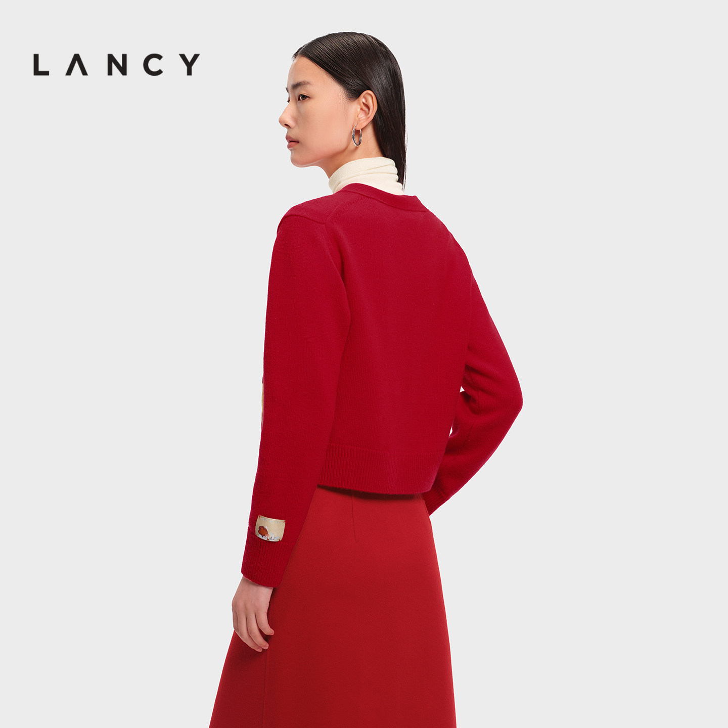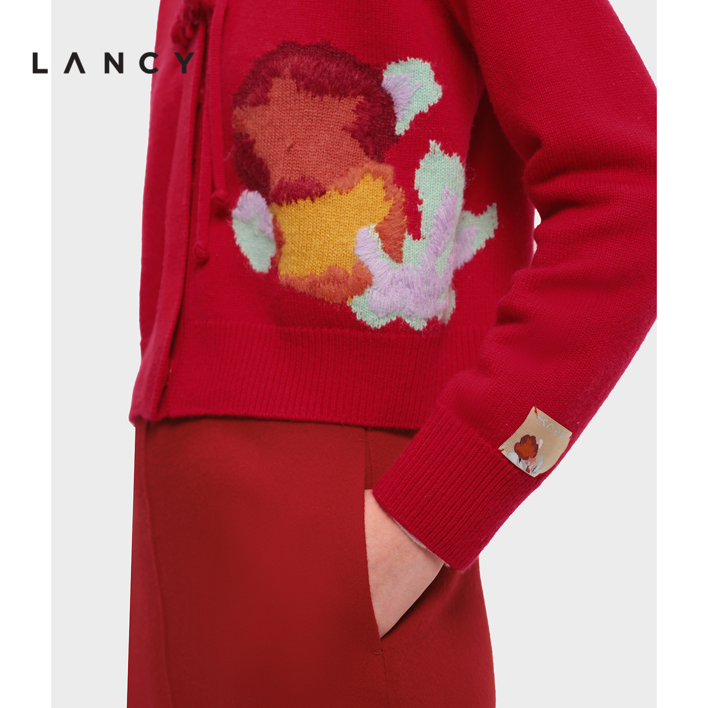 【金玉满棠】LANCY/朗姿2026春新款新年新中式盘扣V领短针织开衫