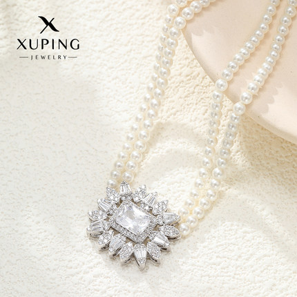 旭平方形仿珍珠双层项链女时尚轻奢气质复古宫廷风锁骨链GDW