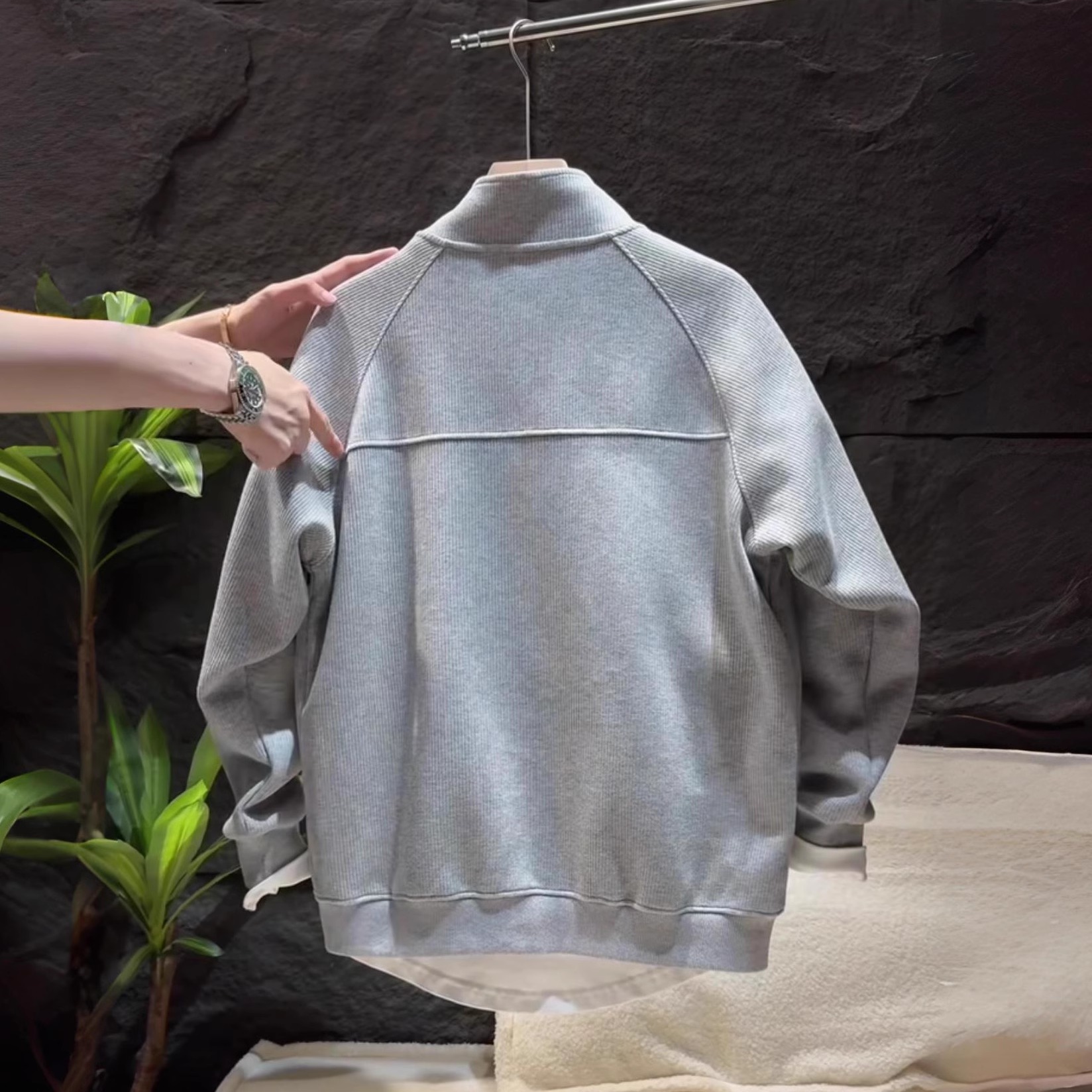 春秋新品潮流拼接刺绣立领夹克外套男士轻奢简约纯色百搭休闲上衣