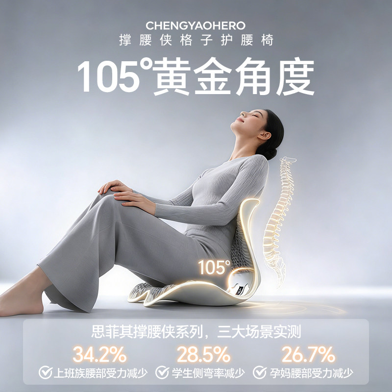 思菲其撑腰侠护腰坐垫办公室靠背一体座椅人体工学久坐神器腰靠垫