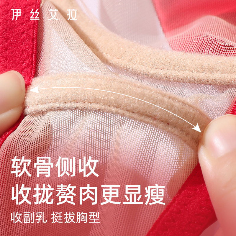伊丝艾拉红色内衣内裤套装女性感一字美背结婚本命年聚拢文胸薄款