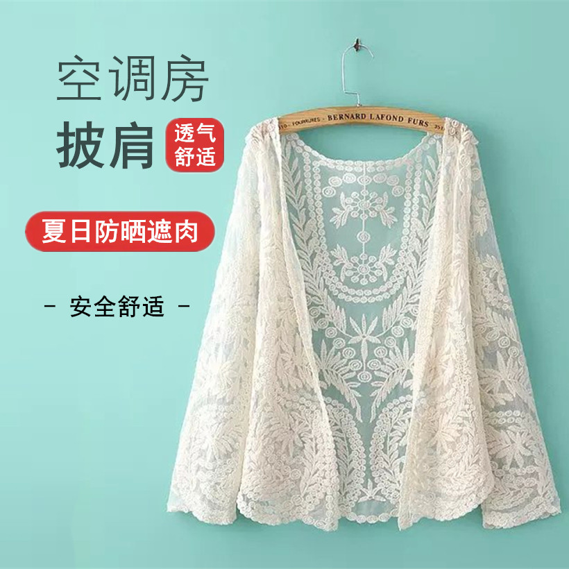 防晒女薄夏季蕾丝罩衫网纱开衫